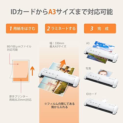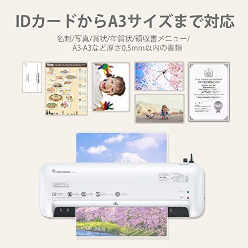 bonsaii ラミネーター A3/A4/B5/はがき/名刺サイズ対応 80/100μmフィルム対応 ウォームアップ時間3-4分 気泡なし 波打防止 簡単操作 家庭用 業務用 軽量 3点セット【PSE認証済】ホワイト L309-A