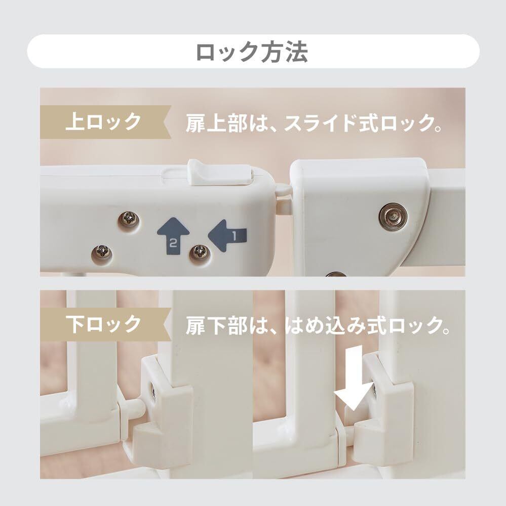 [本体サイズ] 幅約69×奥行約3.3×高さ約78 [対象] 6ヶ月 ~ 90度以上開くと扉が止まり解放することができます。 90度未満での扉の使用時は、自動で扉が閉まりロックします。 10cmの拡張フレームで最大91cm幅まで取り付け可能。 ※階段には取り付けないで下さい