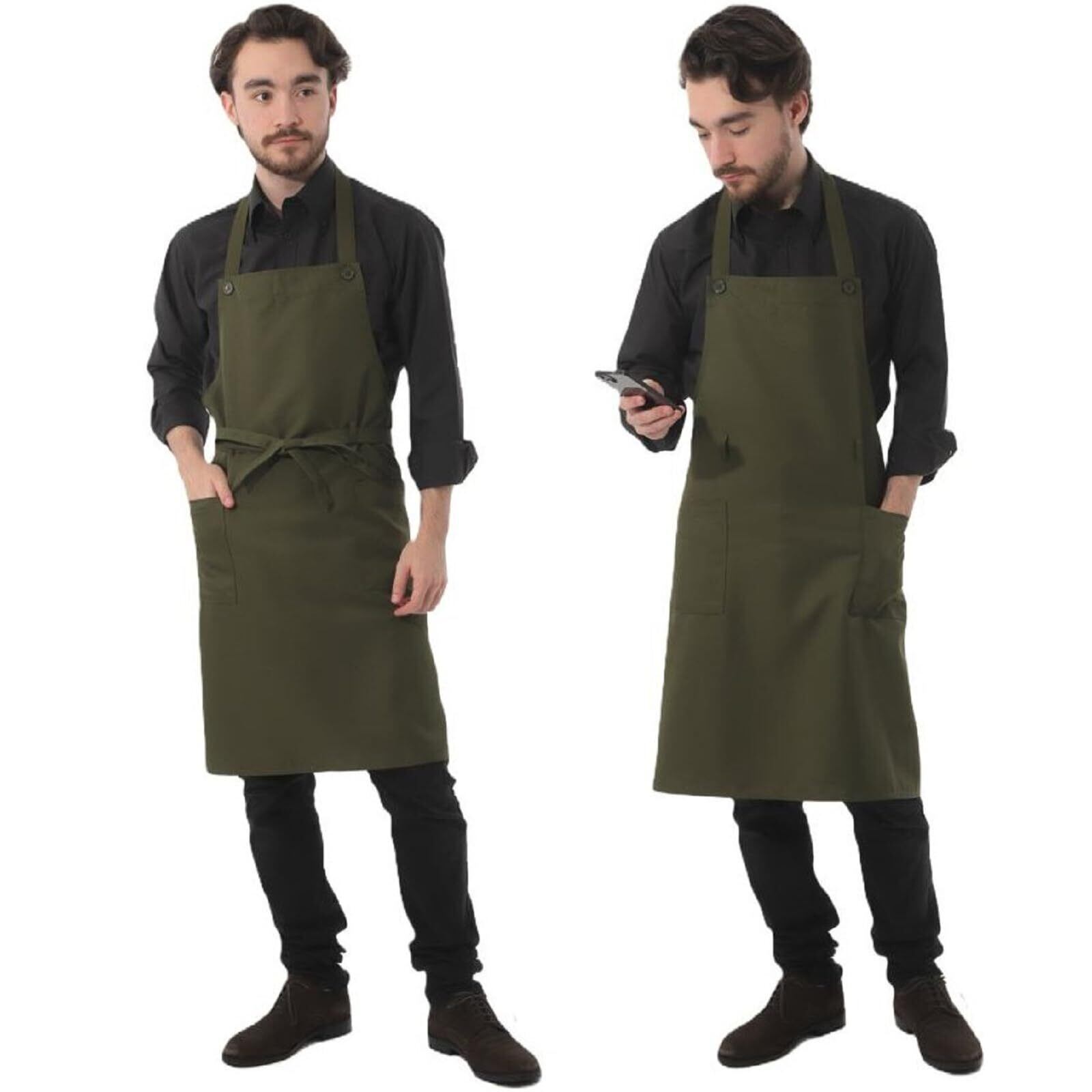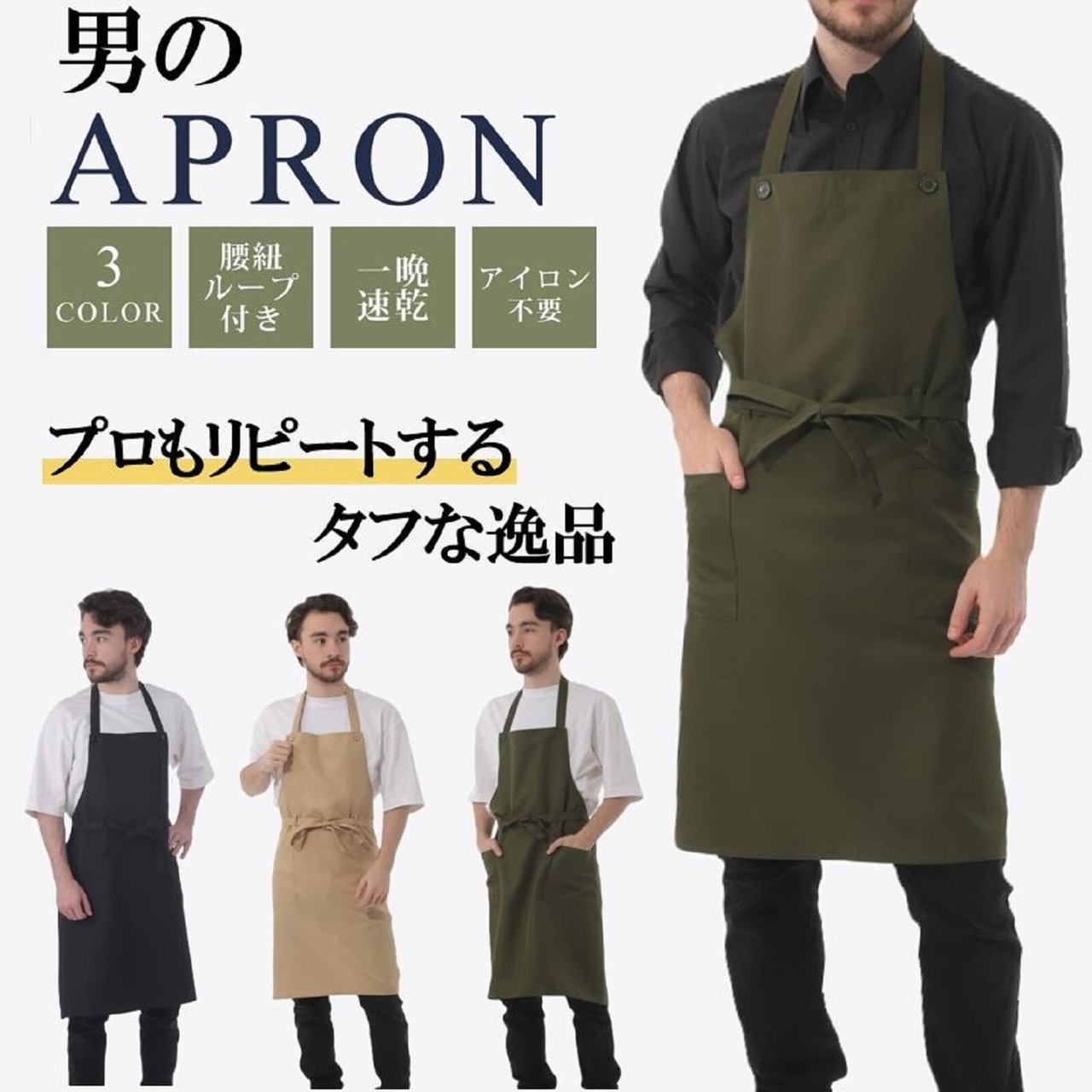 [SSY] メンズ エプロン ノーアイロン シンプル プレーン 首掛け 前結び 3way 男 無地 メンズ ソムリ(グリーン)