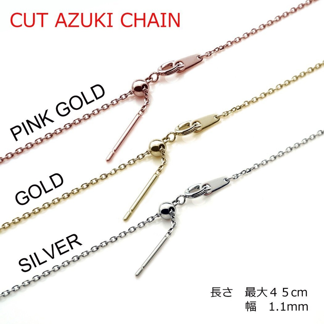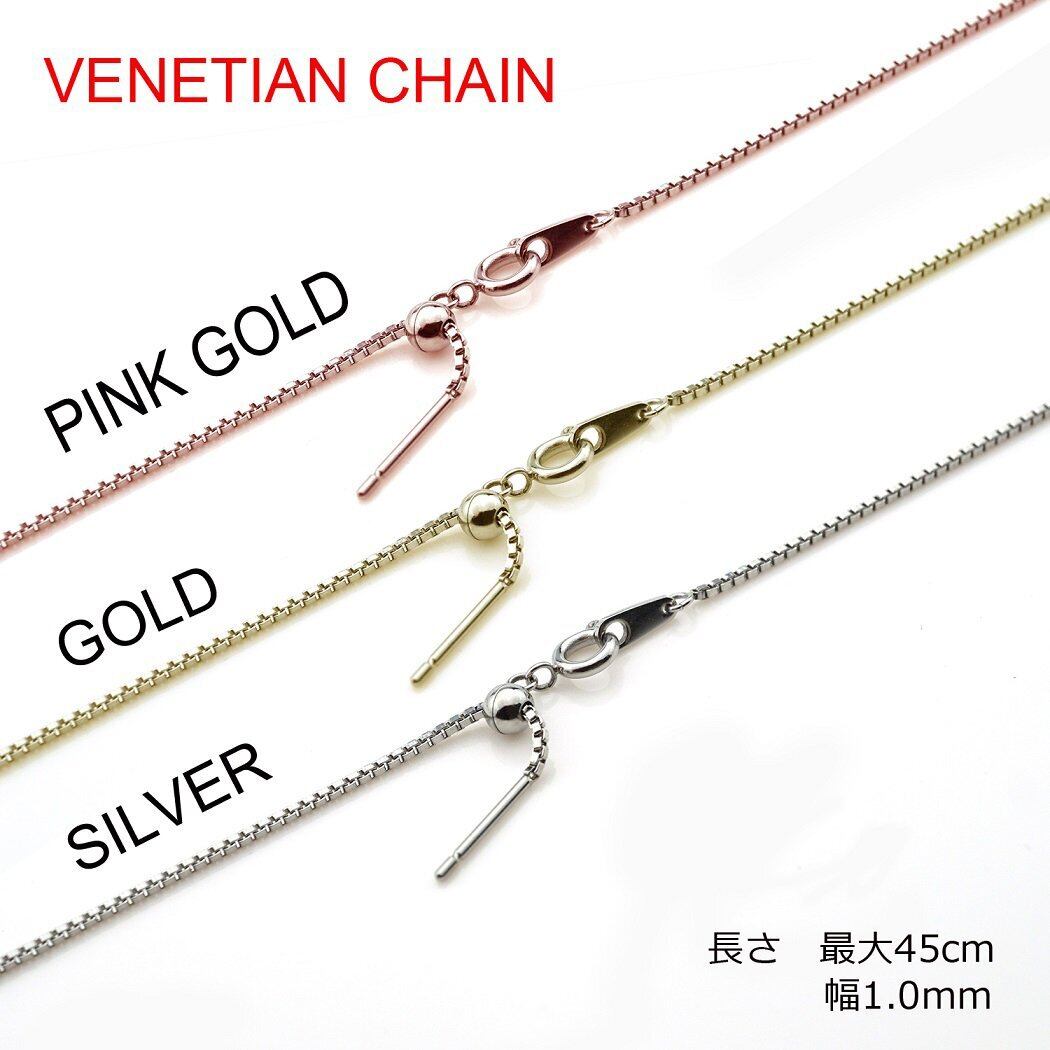 [Petit Jewel YU-NA] レディース ネックレス チェーン ステンレス 316L スライド調節 金属アレルギー対応 3色 (幅1.0mmベネチアンチェーン,シルバーカラー)