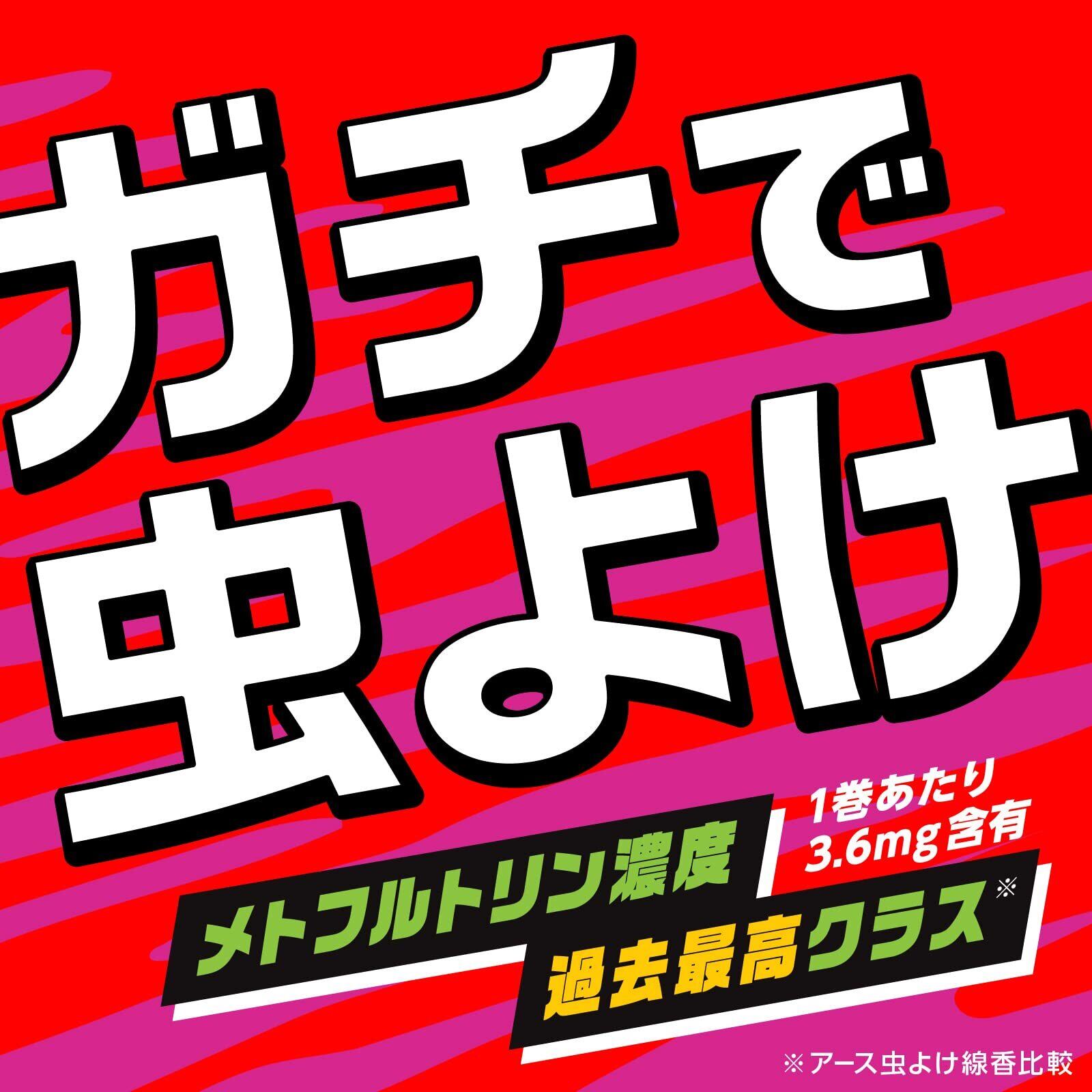 1巻有効成分(メトフルトリン)含有量3.6mg。アース虫よけ線香の中でも濃度最高クラス