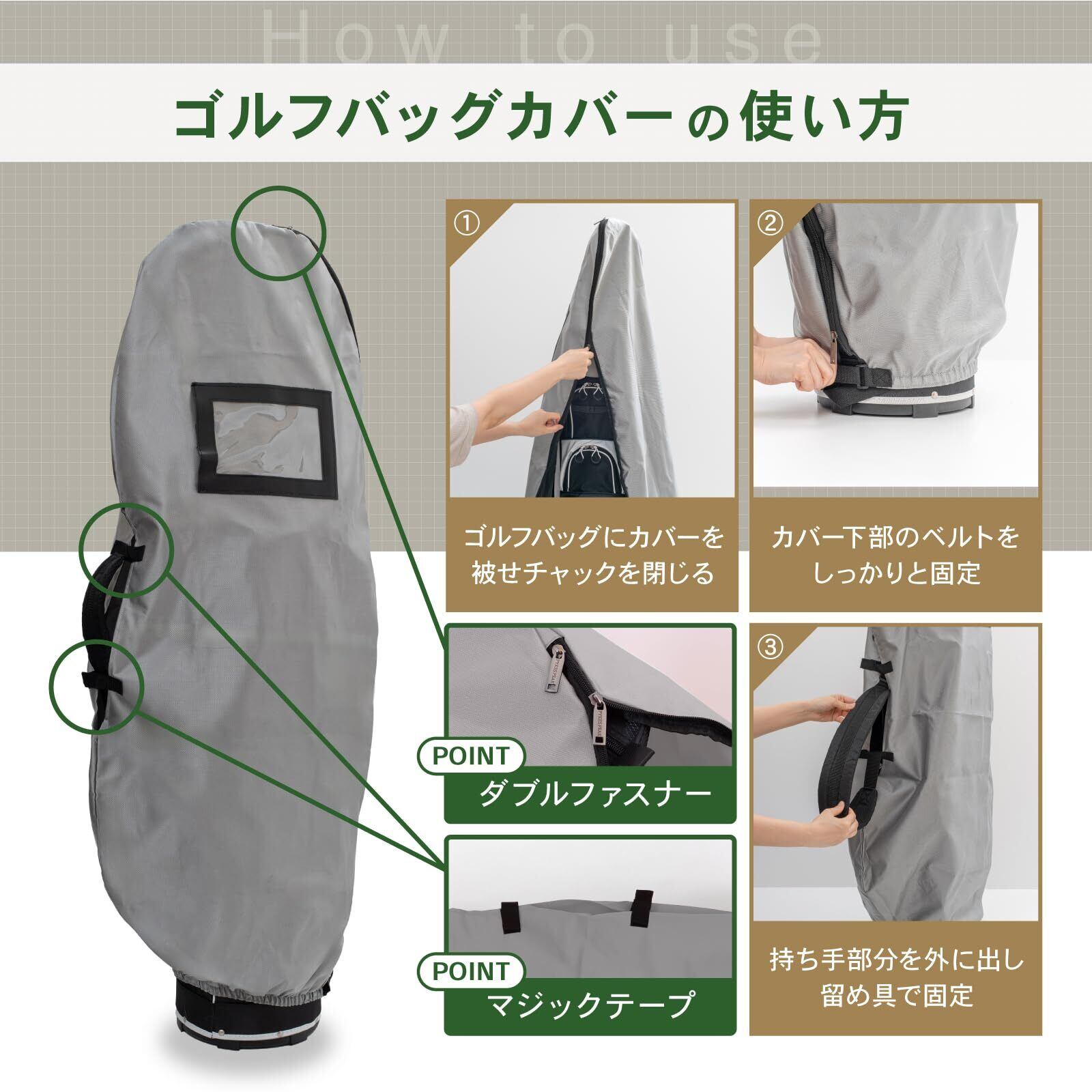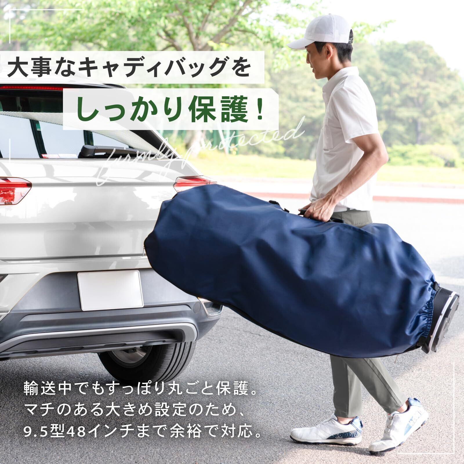 【耐久性に優れたトラベルカバー】 あなたの大事なキャディバッグを守るため、耐久性の優れた頑丈な素材のポリエステルを使用しております。繰り返し何度も使用するものなので耐久性は重要です。ポリエステルは汚れや摩擦にも強い為、航空便での輸送でも大切なキャディバッグを傷や汚れから守ります。また、サイドにマジックテープも付いており、キャディバッグの肩紐を出すだけでトラベルカバーを装着したまま移動することも可能です。