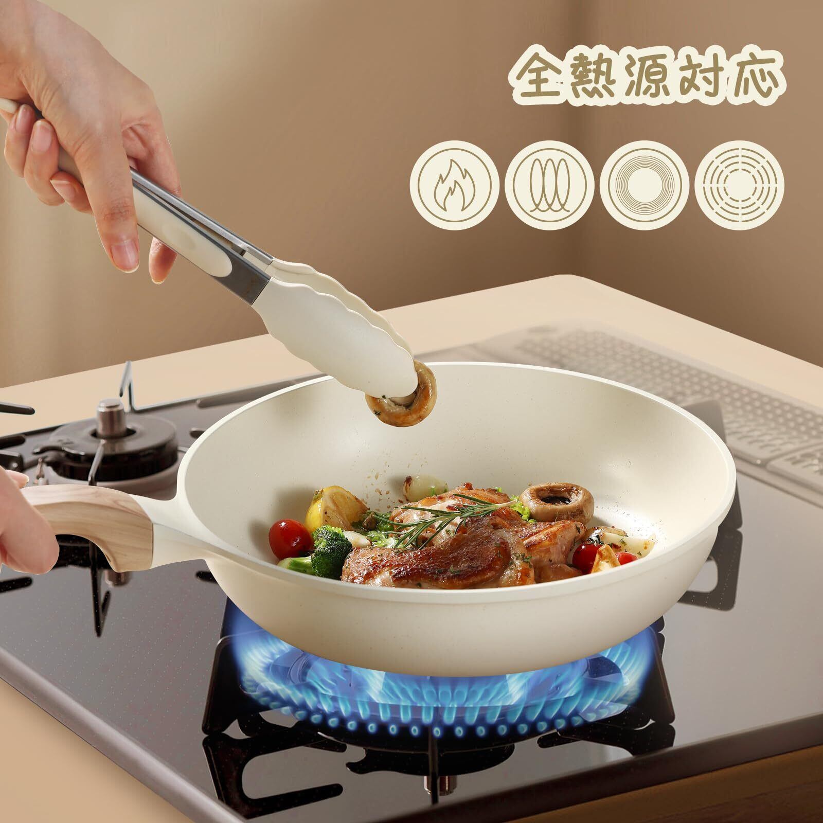【快適な調理体験】内面がマーブルコートをしているため、焦げ付きにくくスムーズに調理できます。調理後もスポンジで軽く拭くだけで、汚れもスルッと落ちます