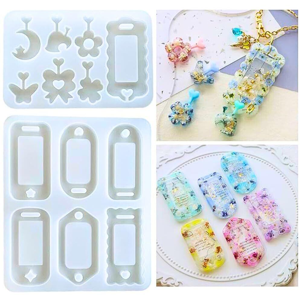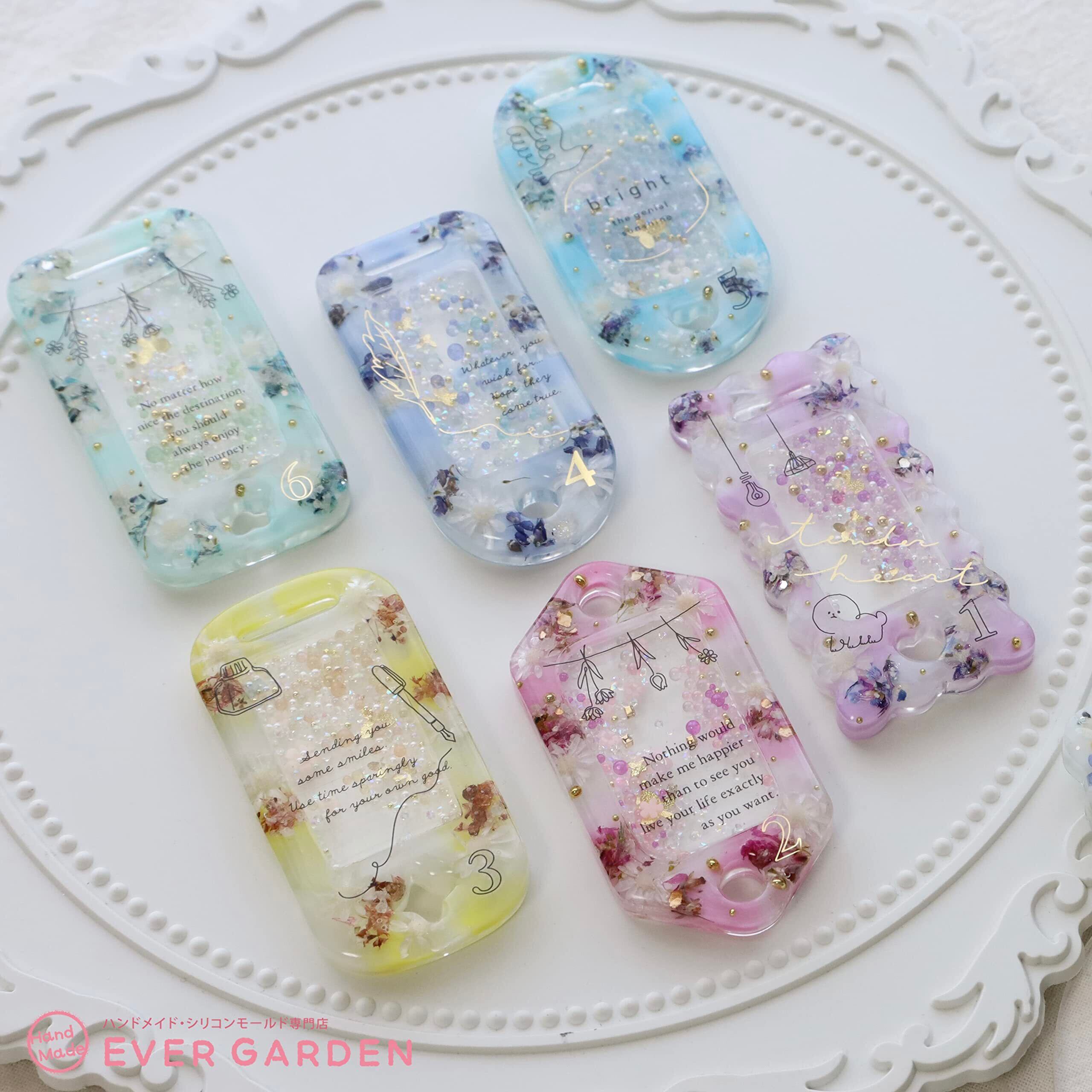 Ever garden 【2枚セット】 シャカシャカ ネームタグ 7種類 シリコンモールド 穴あき タイプ レジン ハート シェイカーモールド 星 キーホルダー バックチャーム アクセサリー uvレジン シリコン モールド 樹脂 型 手作り キット 名札 月 花 蝶 リボン Ever garden