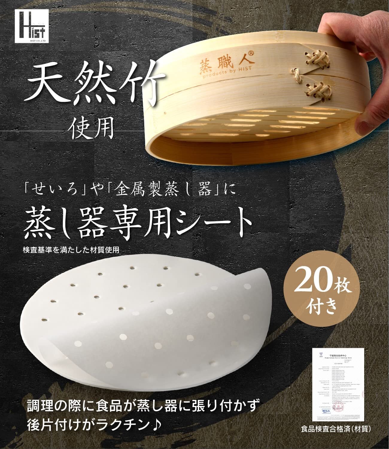 業務用厨房機器 ハイスト 蒸職人 竹セイロ 2段(本体2個蓋1個) 業務用 せいろ蒸し器 蒸し器専用シート20枚付 (蒸職人・竹21cm)
