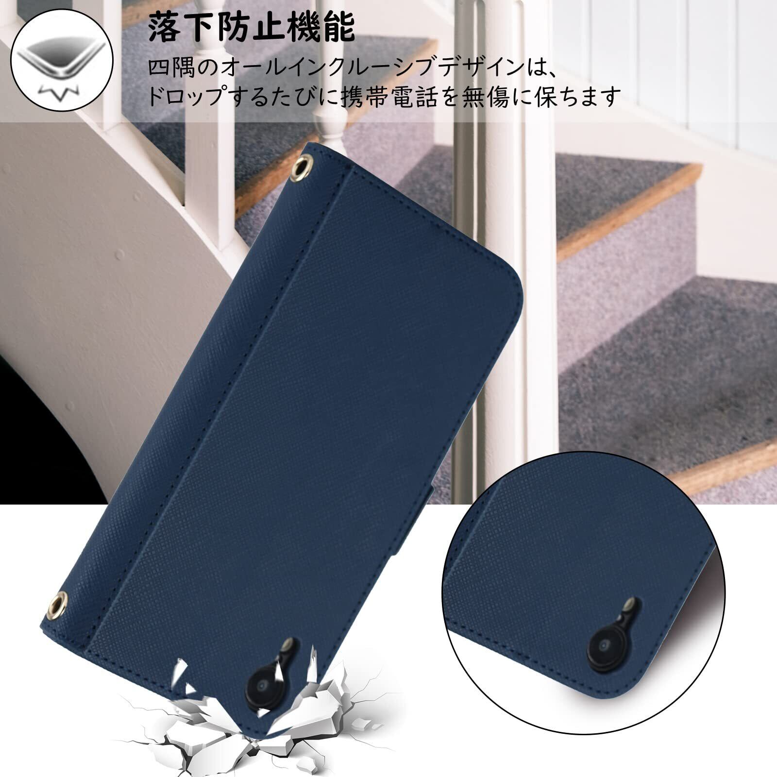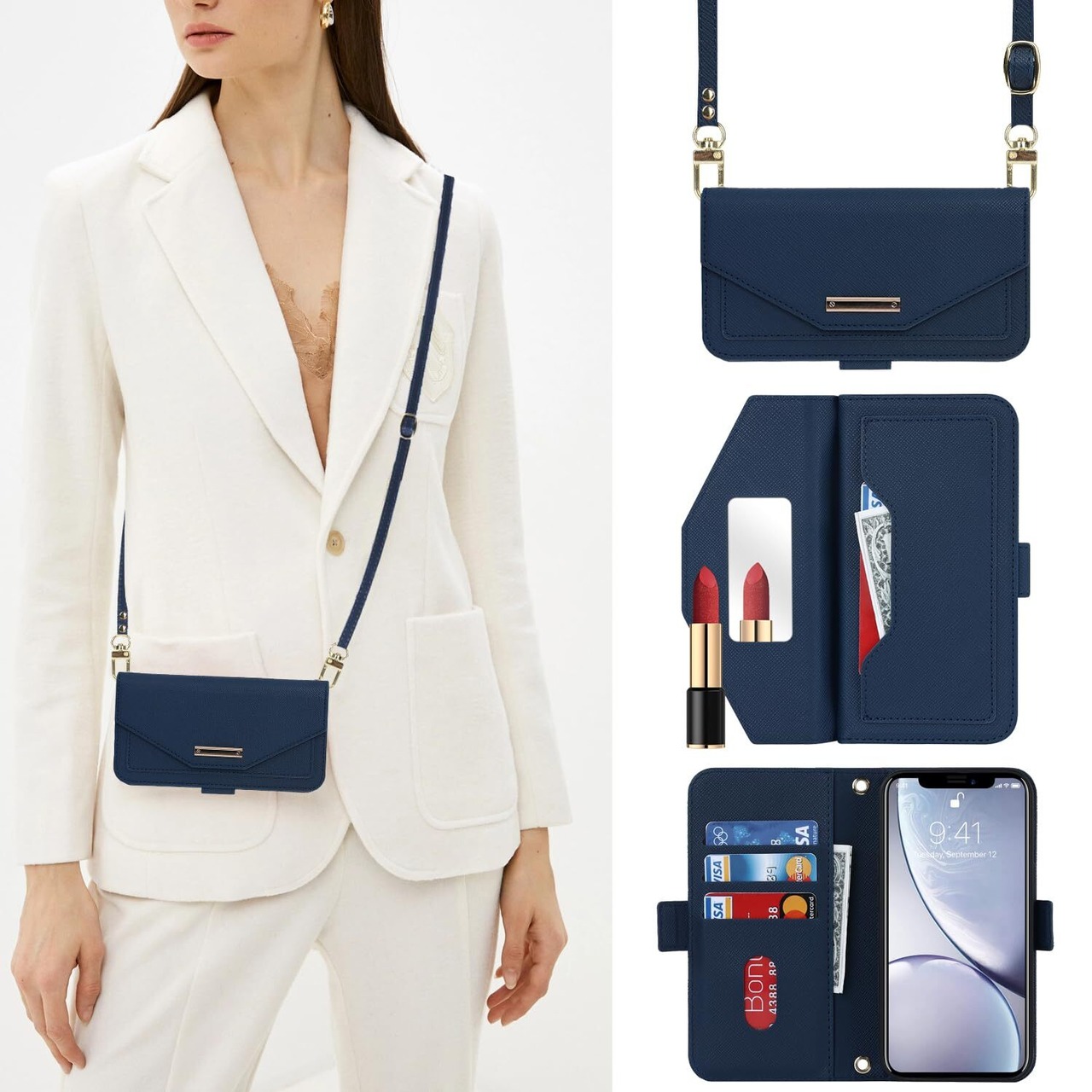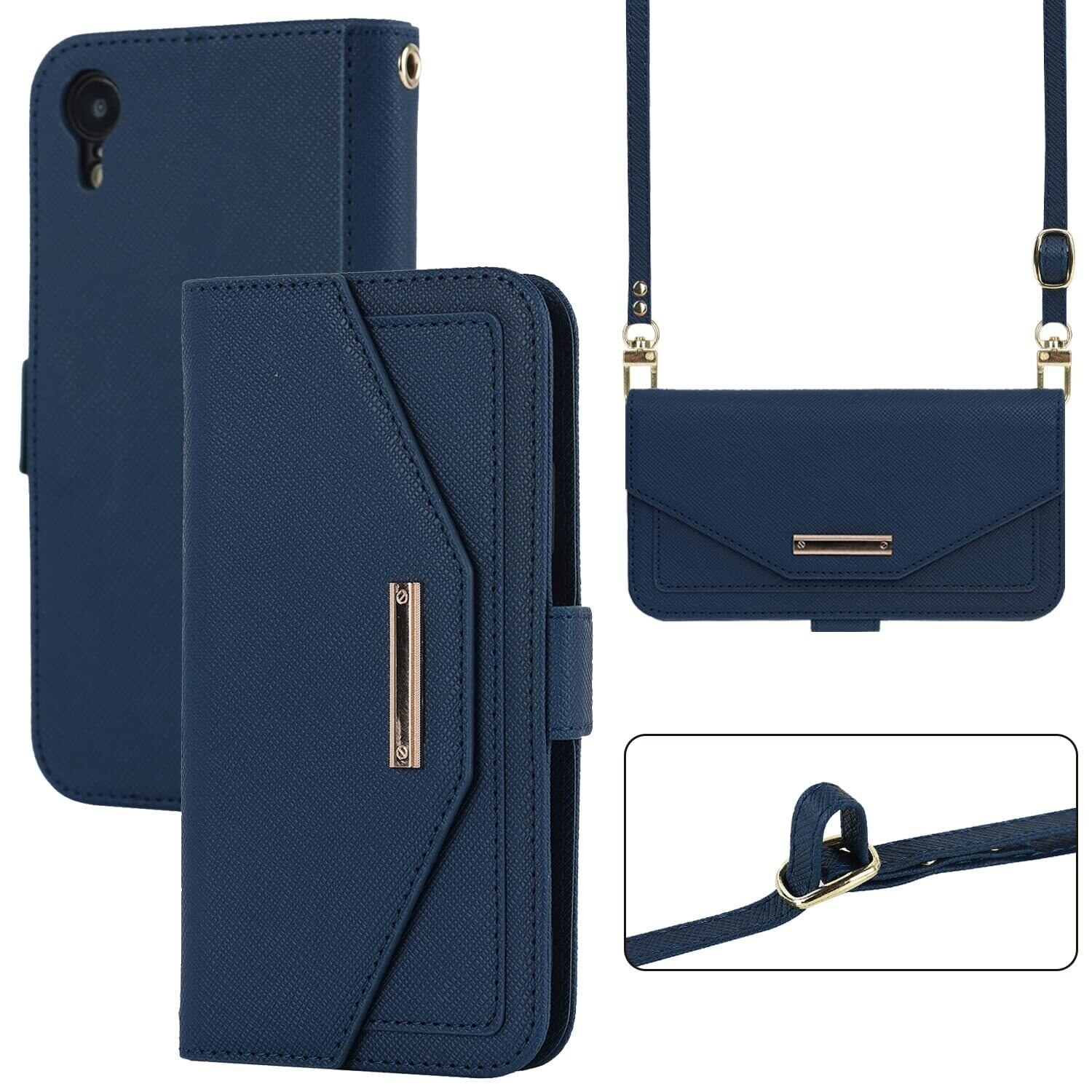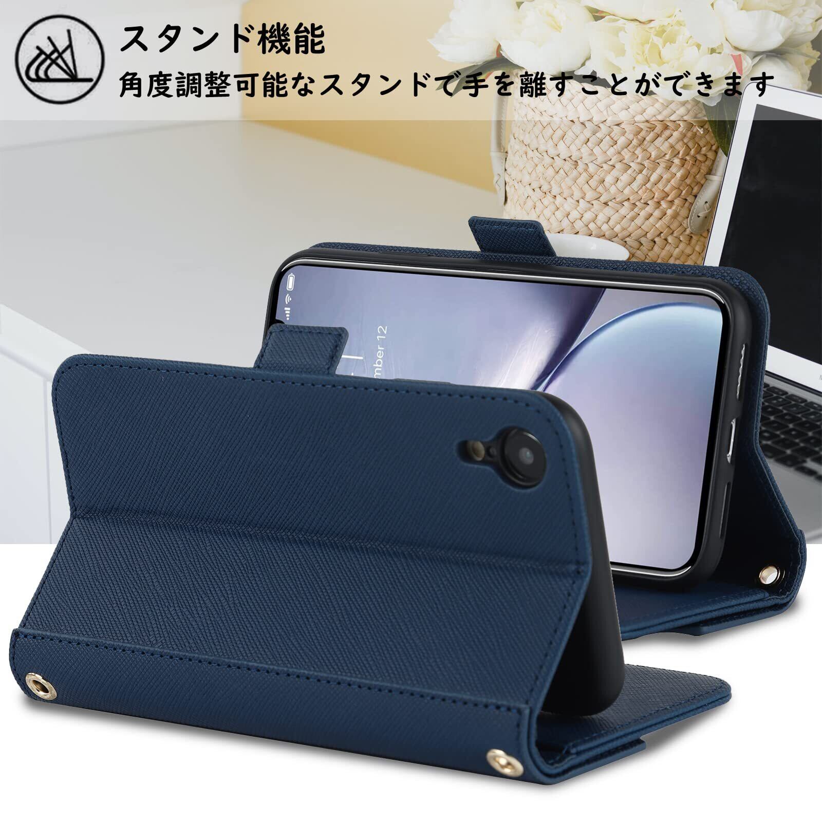 【Hamany】 対応 iPhone xr ケース 手帳型 ショルダー 鏡 スマホケース iphone xr ストラップ付き ミラー カード収納 財布 アイホンxrケース クロスボディケース 肩がけ 首掛け 斜め掛け 耐衝撃 レザー カバー -青
