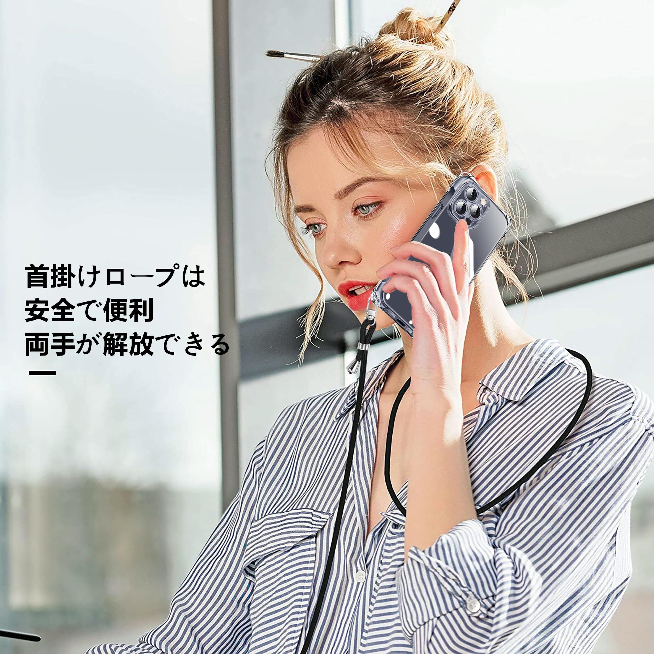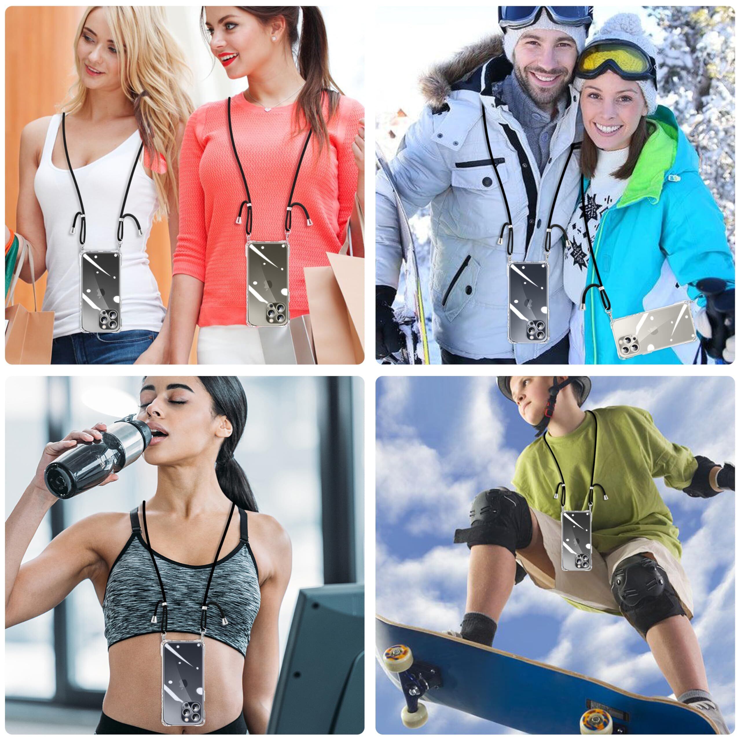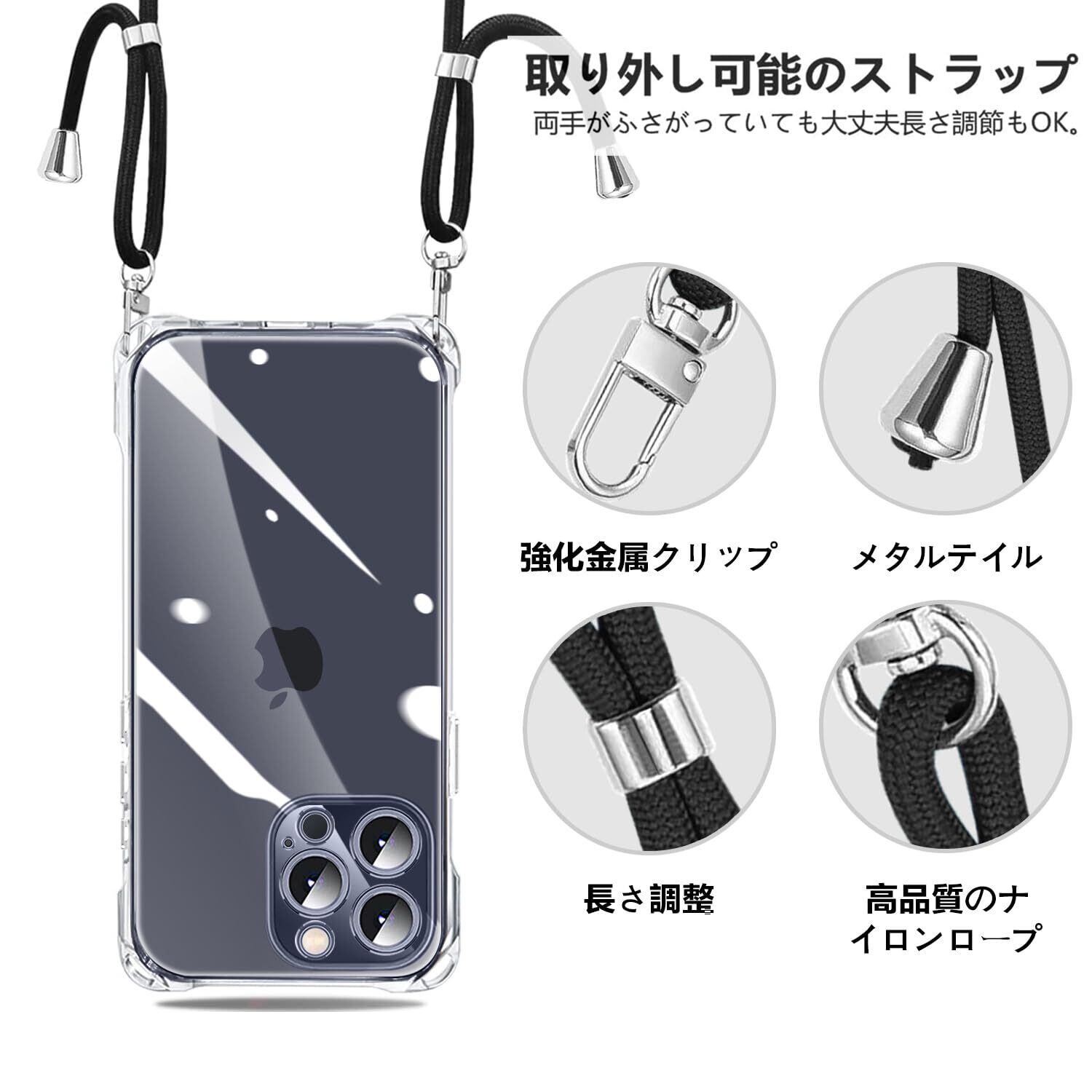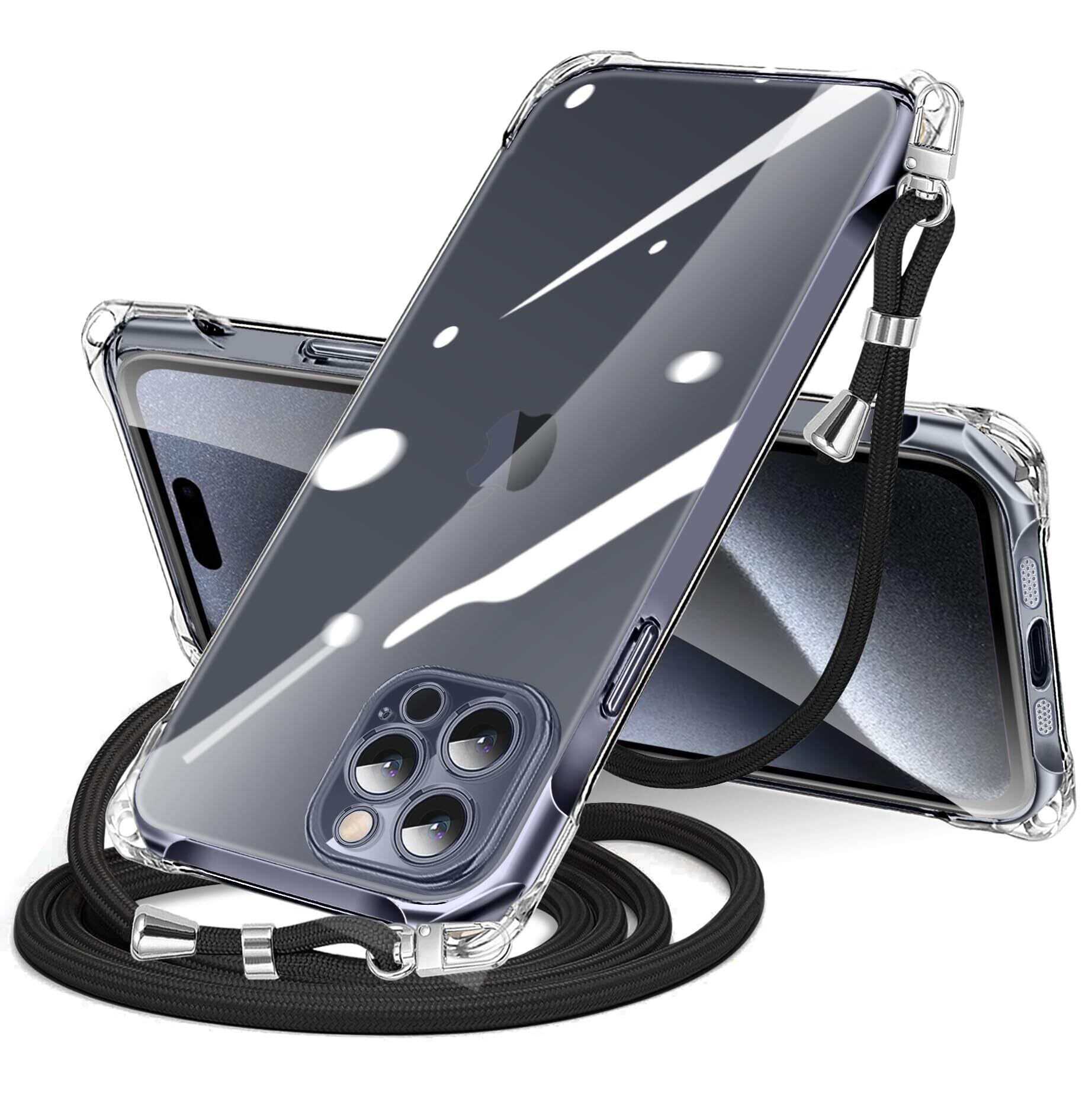 NISIILNG iPhone 15 Pro Max 用 ケース クリア ショルダー iPhone15promax スマホケース アイフォン15ProMax カバー 肩掛け 斜めかけ 縄掛け 透明 薄型 軽量 耐衝撃 TPU ストラップ付き 紐付き 斜めがけ 織りストラップ付き ネックストラップ ショルダー 縦/横 2WAY 長さ調整可能 取り外し可能 落下防止 紛失防止 (クリア)