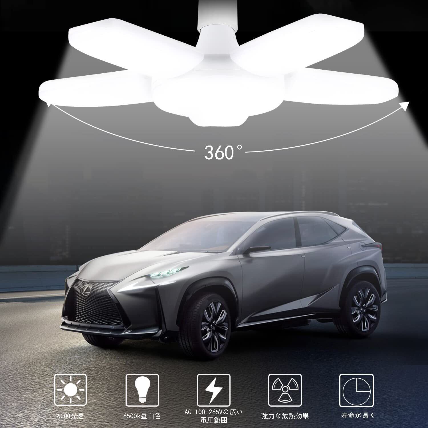 【長寿命&環境にやさしい】 このLEDガレージライトは、軽量で安全な新しい断熱材を備えています。短絡保護、高温保護、耐熱PC素材。 360°デッドコーナー、フリッカー、一貫性のある安定した発光はありません。