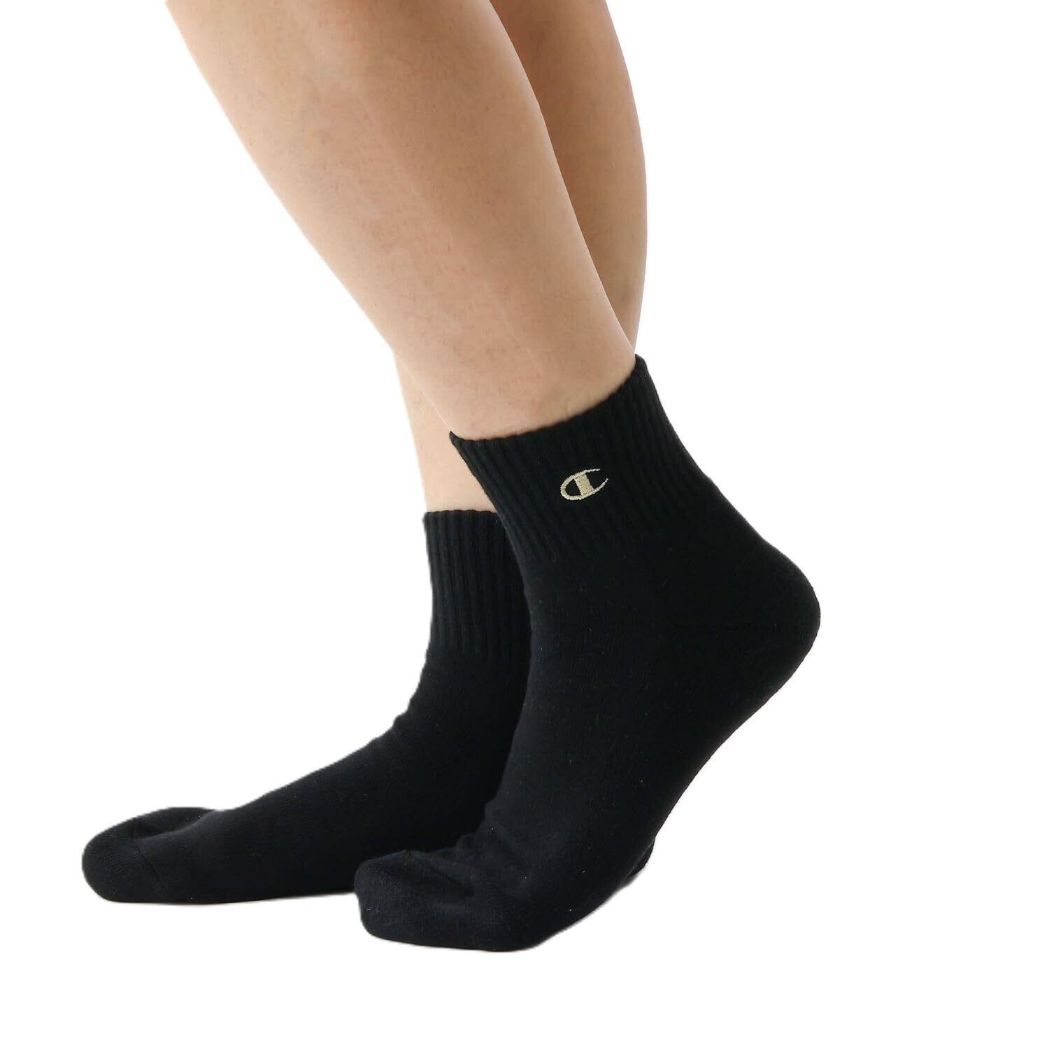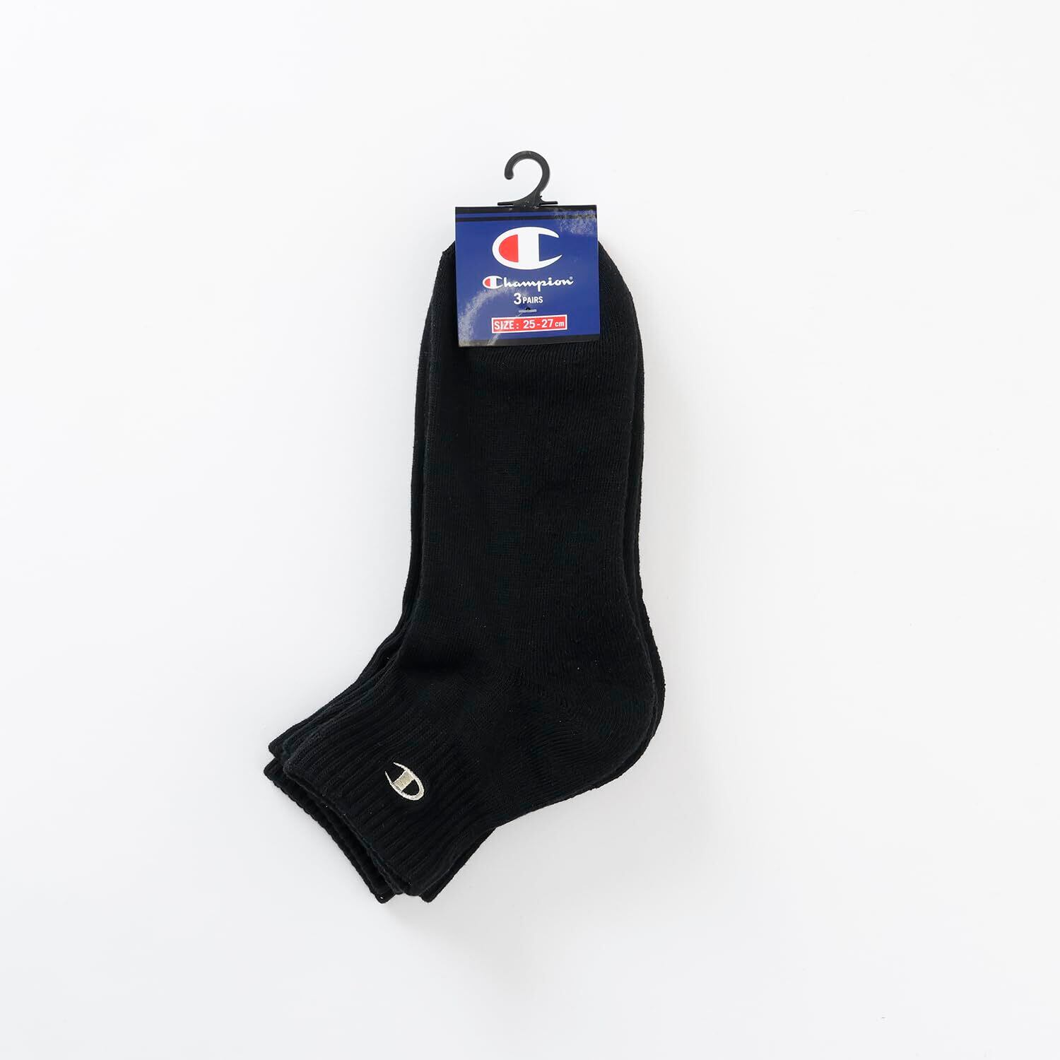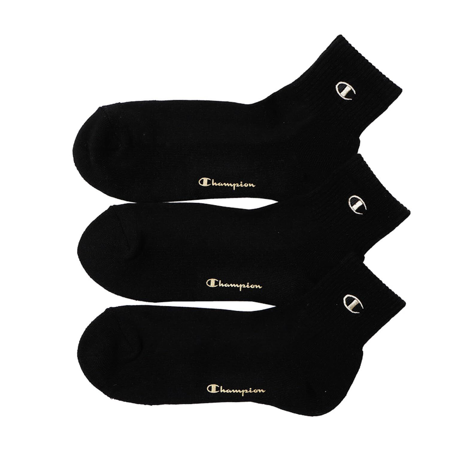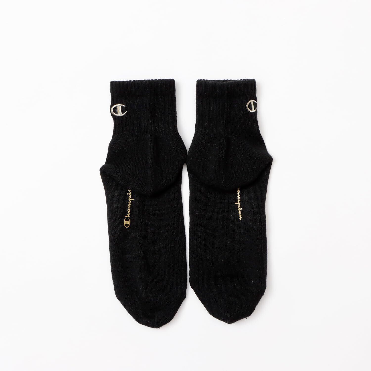 靴下 無地ソックス (3足組) ハーフパイル ロゴ刺繍 ワンポイントロゴ クォーターレングスソックス3P C1-1706-090-M