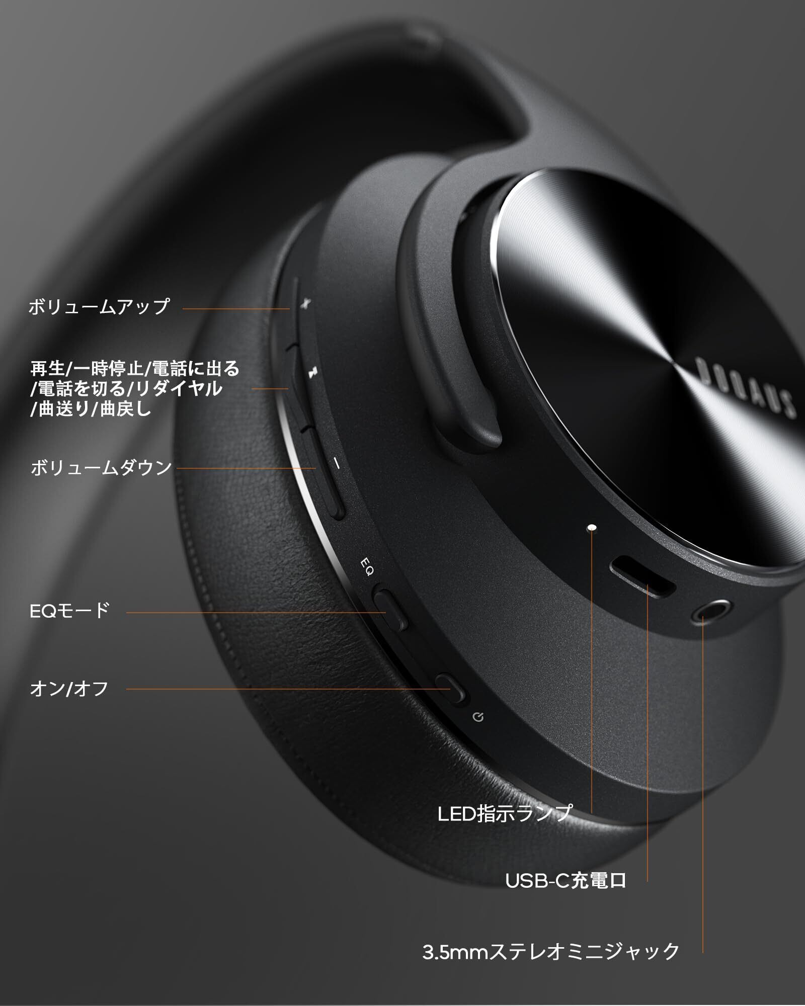 DOQAUS(ドカアス) ヘッドホン Bluetooth5.3 ワイヤレスヘッドホン 最大80時間連続再生 3EQサウンドモード オーバーイヤーヘッドホン マイク内蔵 有線対応 密閉型 メモリーフォーム 耳に優しい 携帯・パソコン・ウォークマン対応 LIFE3 (ブラック)