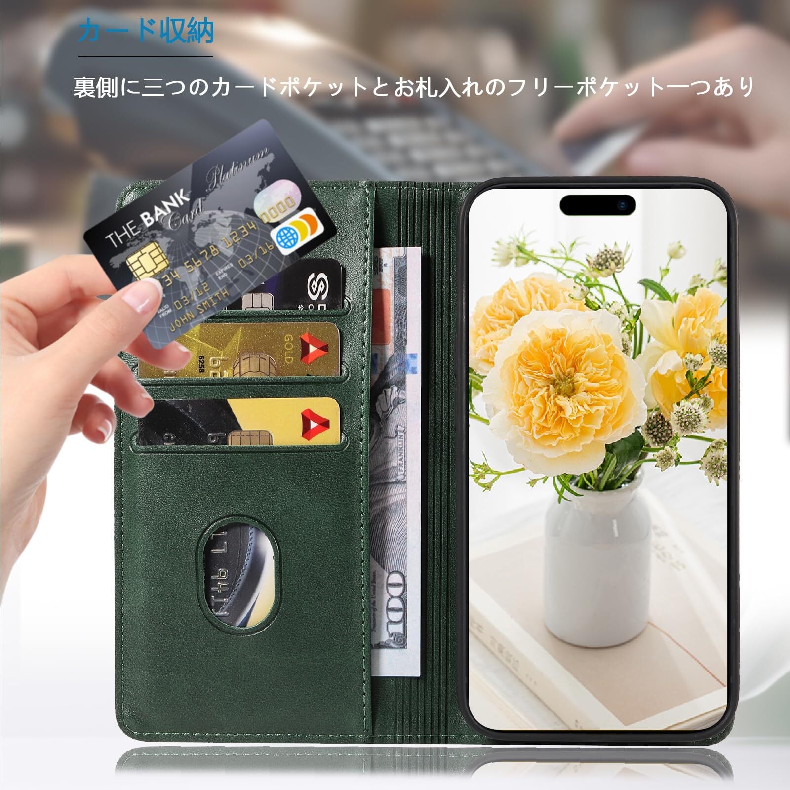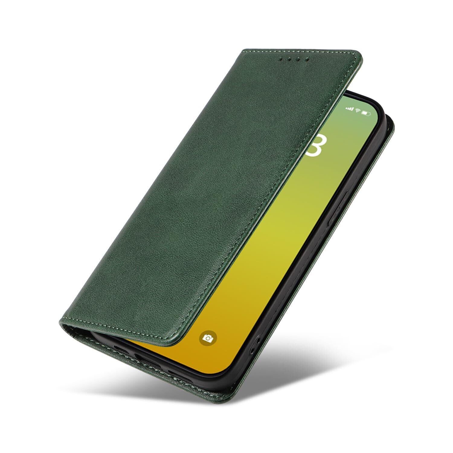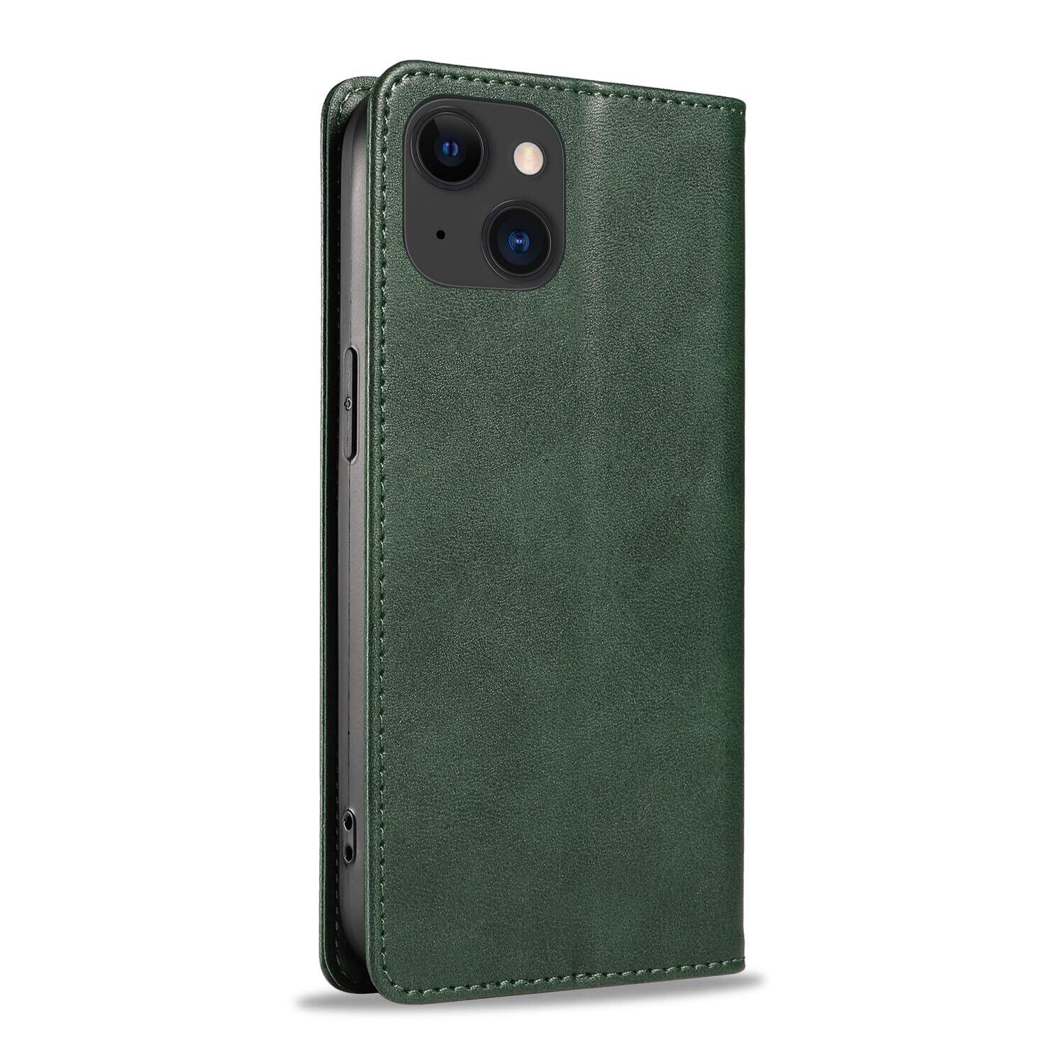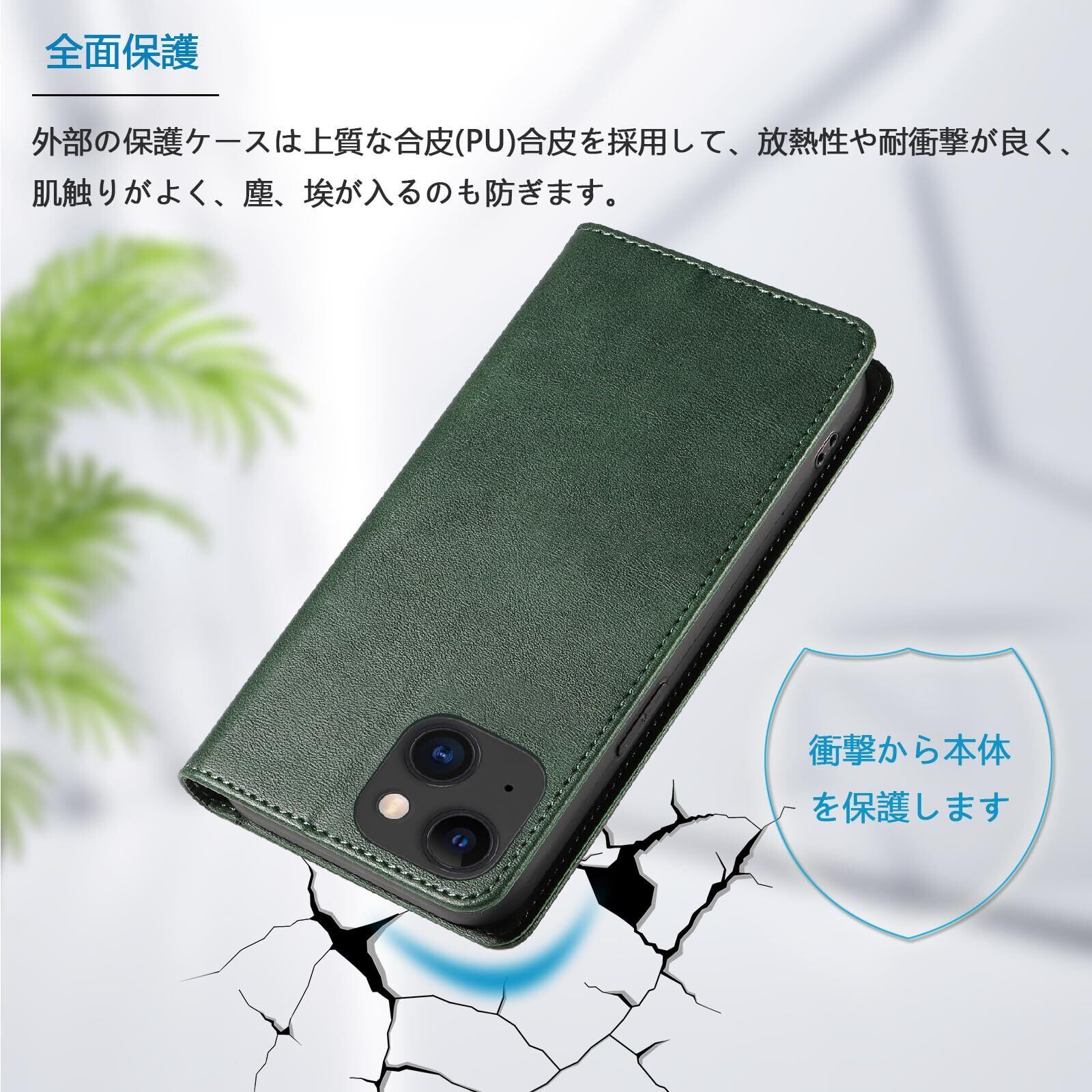 PinLiSheng iPhone 15 ケース手帳型 イフォン15 スマホケース 手帳型あいふぉん15携帯カバー レザー 耐衝撃 軽量 着脱しやすい 放熱性 マグネット式 カード収納 スタンド機能 iphone ケース15 対応 360度保護 (グリーン, iPhone 15)