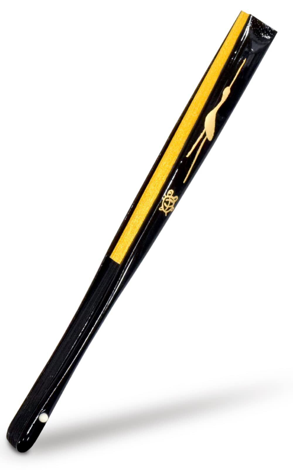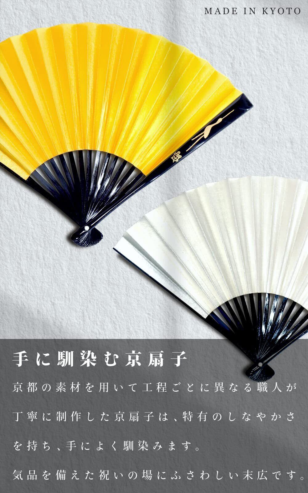 結婚式やお祝いの場に黒留袖や色留袖などの和装で出席する際は必ず持たなくてはならない末広(扇子)です。漆とおなじ成分の「カシュー塗料」を使用し高級感と気品の高さを備えています。サイド部分には縁起の良い蒔絵(まきえ)風の柄をあしらいました。お祝いの場にふさわしい末広です。