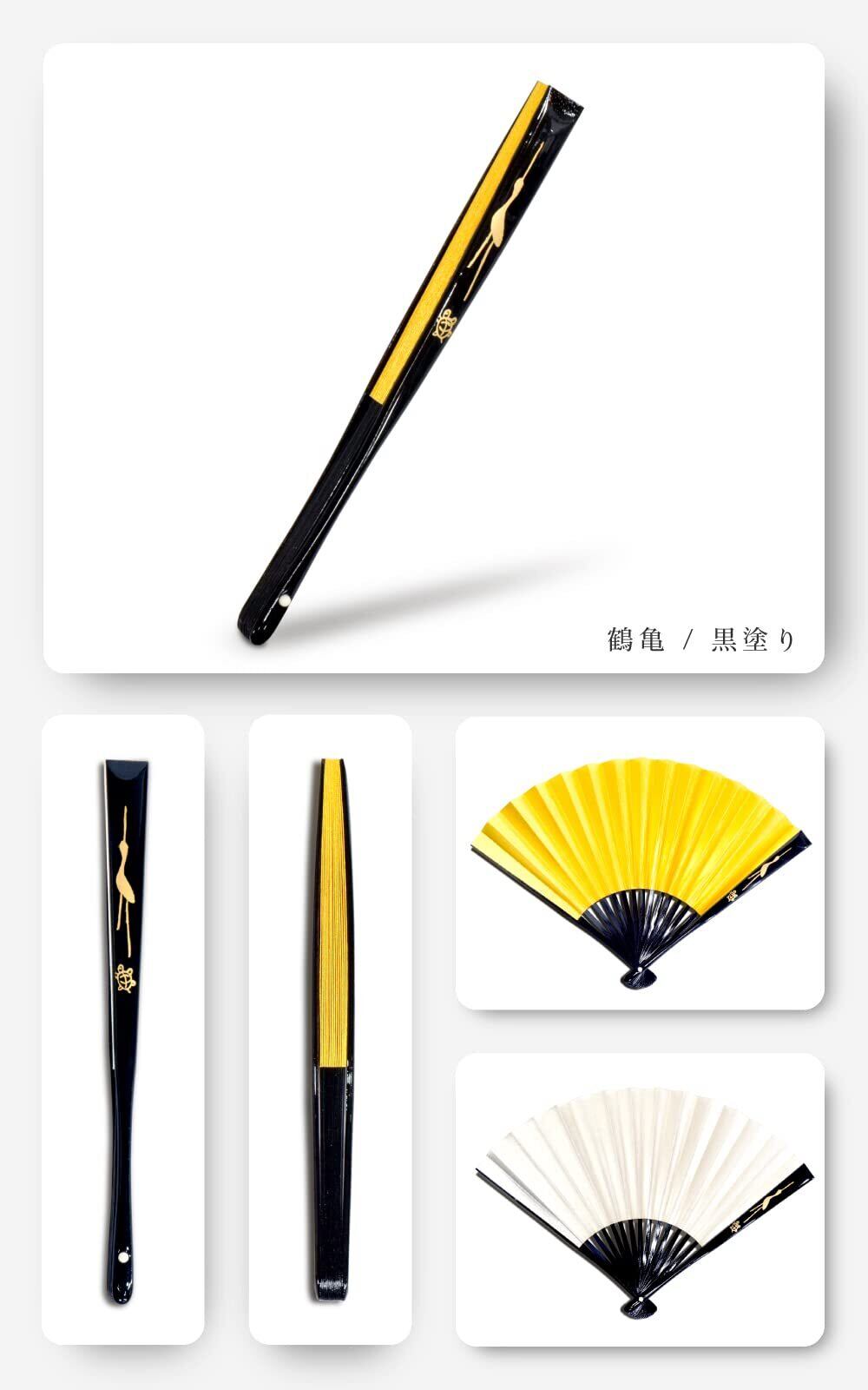 [あい藍] 留袖用 金銀蒔絵末広 箱入り 京扇子 日本製 (黒塗り(鶴亀))