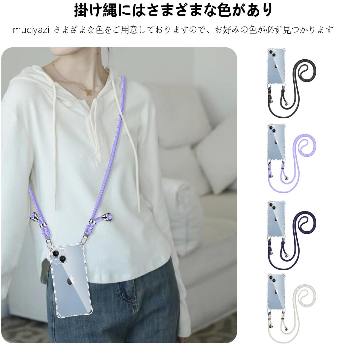 Muciyazi 用の iPhone 14 ケース クリア ショルダー アイフォン14 カバー 肩掛け 斜めかけ 縄掛けケース 透明 薄型 軽量 TPU 携帯ケース 紐付き 長さ調整可能 取り外し可能 落下防止 紛失防止 ワイヤレス充電対応(パープル)