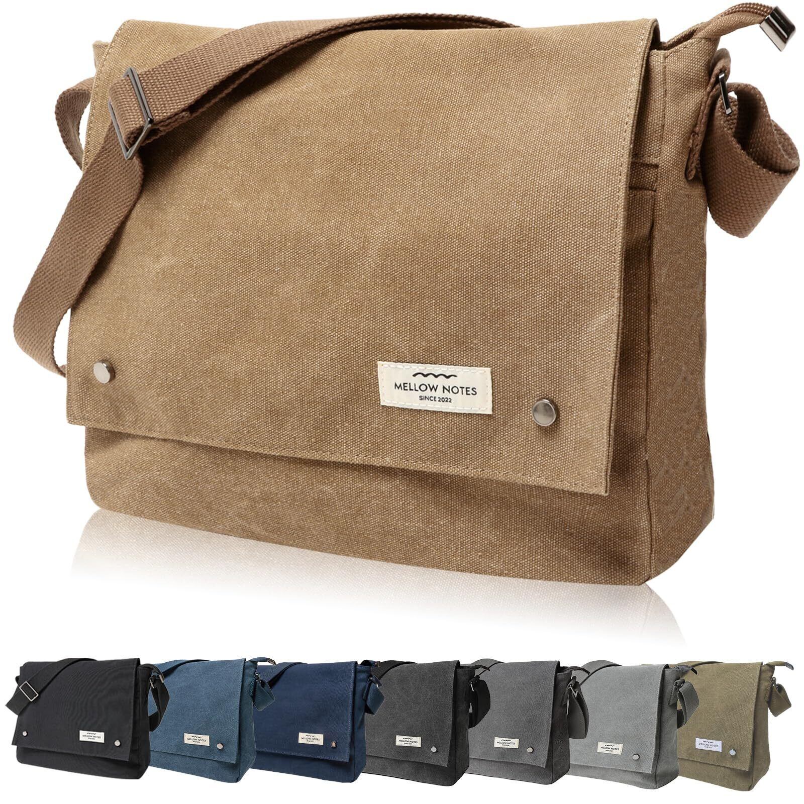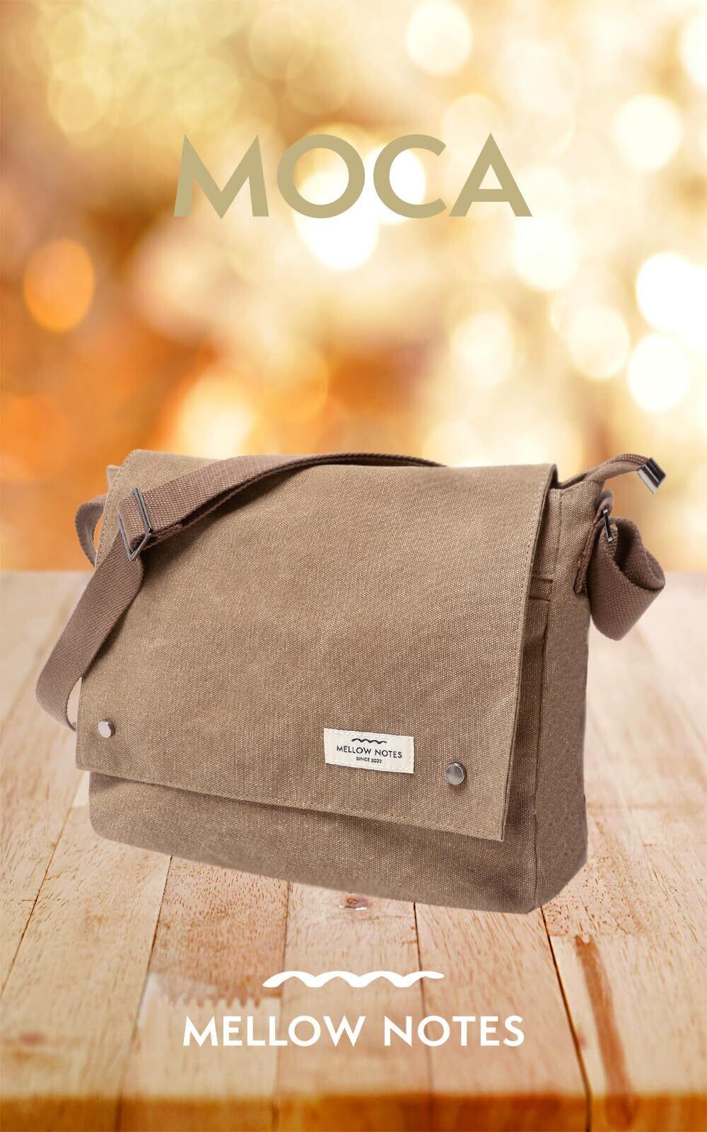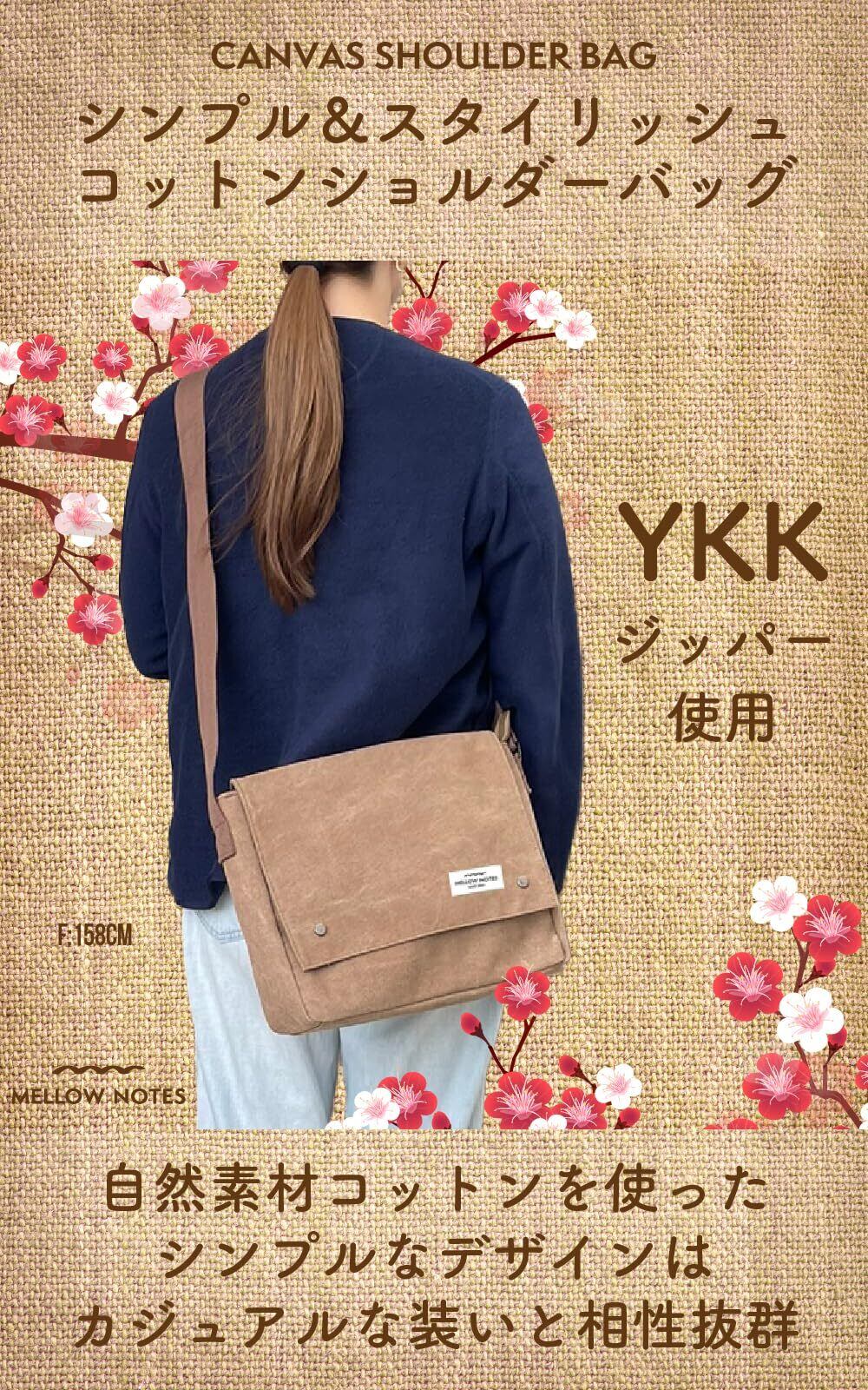 [MELLOW NOTES] [メローノーツ] ショルダーバッグ メンズ ショルダー バッグ 肩掛け メッセンジャーバッグ YKK 斜めがけ 帆布 キャンバス a4 シンプル カジュアル 人気 モカ(珈琲色)