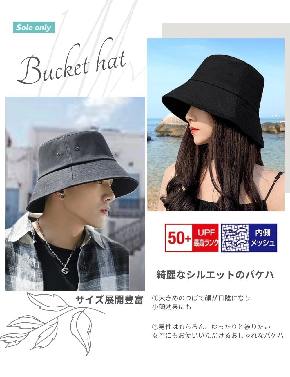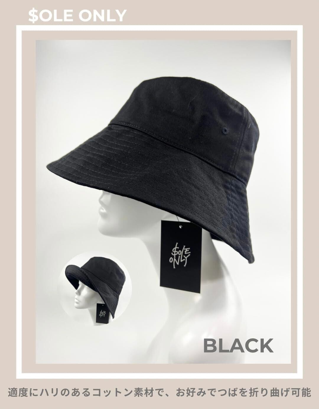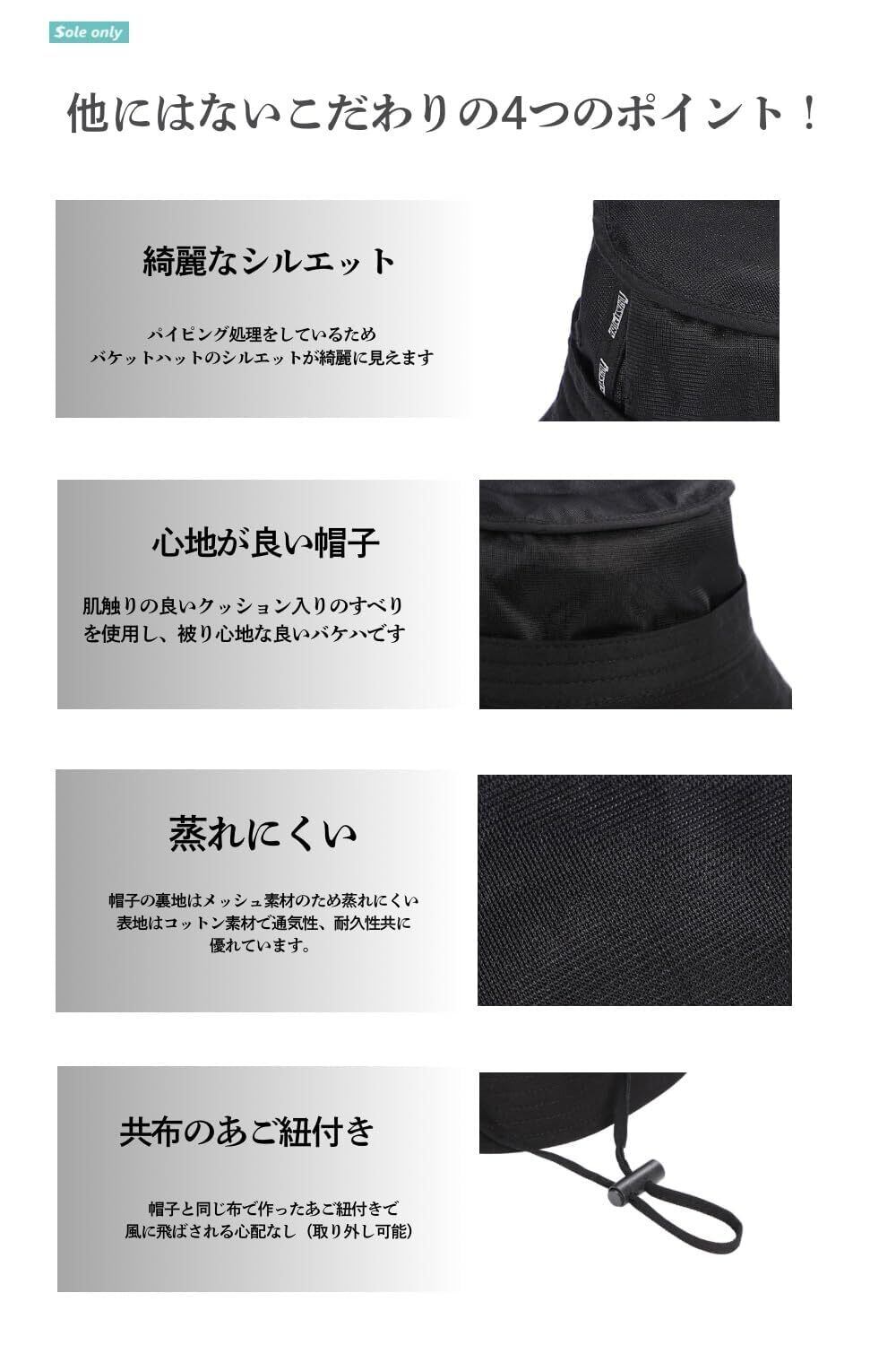 [$ole only] ソールオンリー バケットハット 大きめ 大きい XL 小顔効果 紫外線カット UPF50+ UVカット アウトドア サファリハット バケハ 春 夏 秋 シンプル おしゃれ つば広 メンズ レディース 男 あご紐 綺麗 (XL, ブラック)