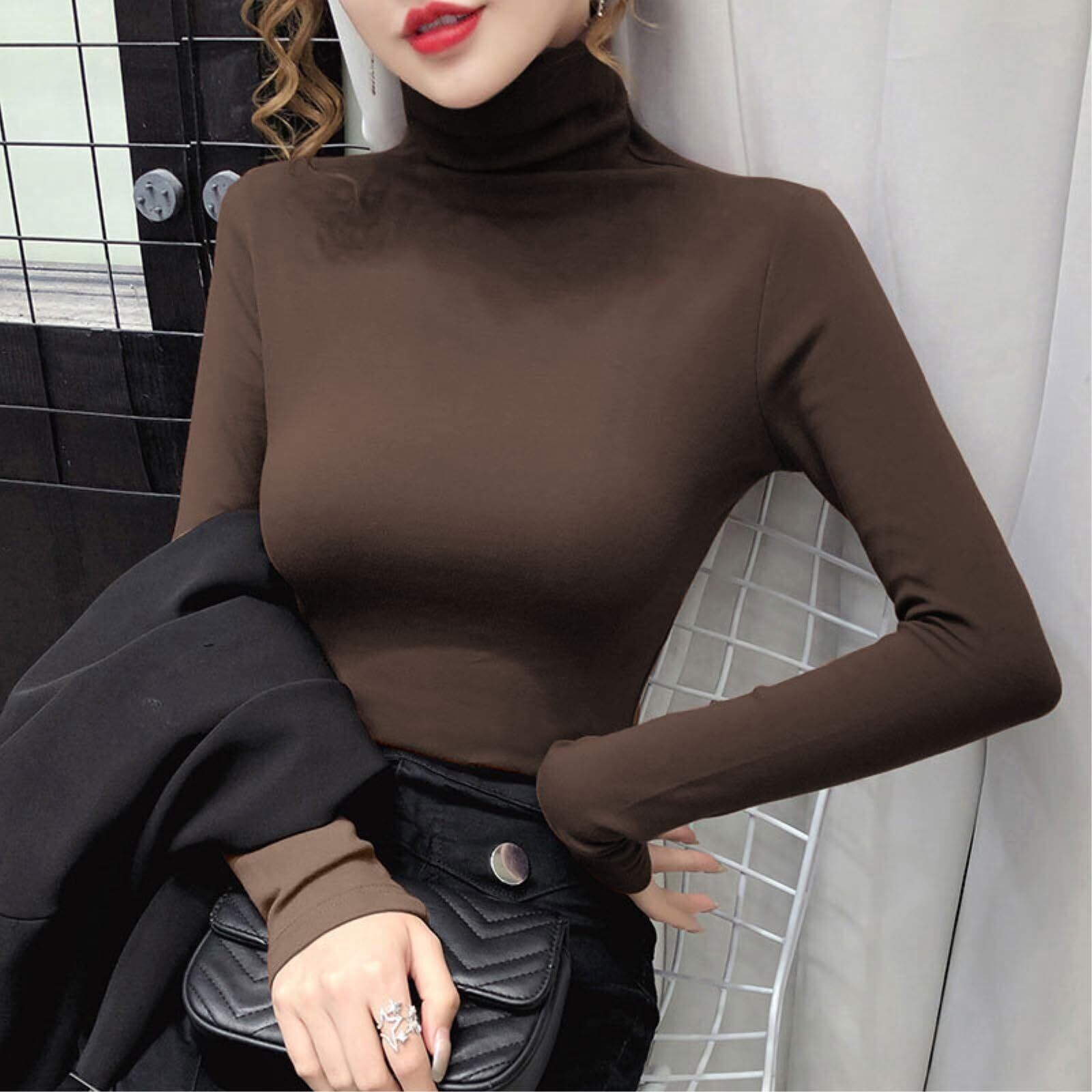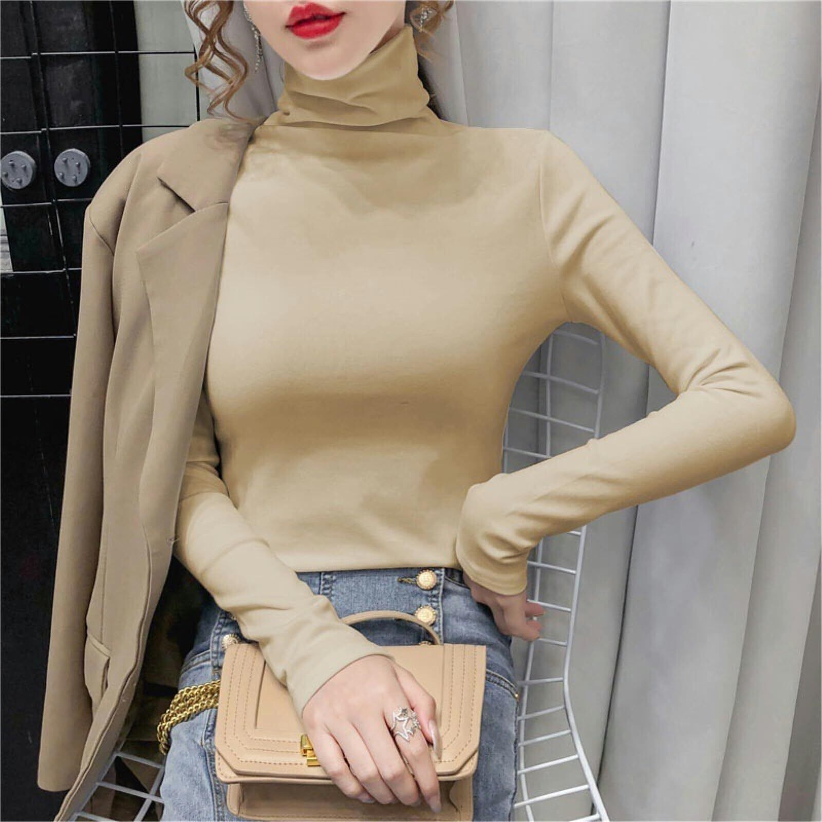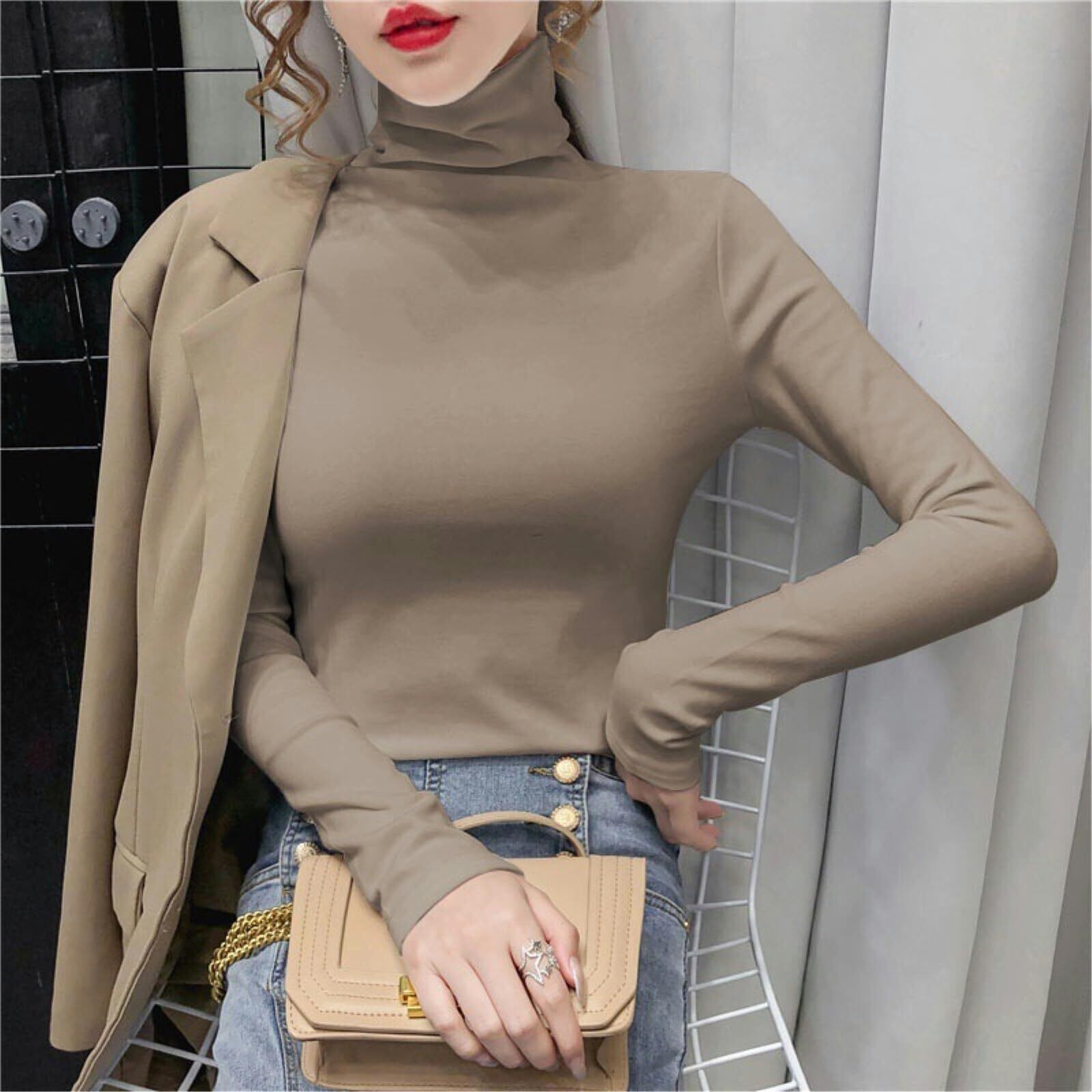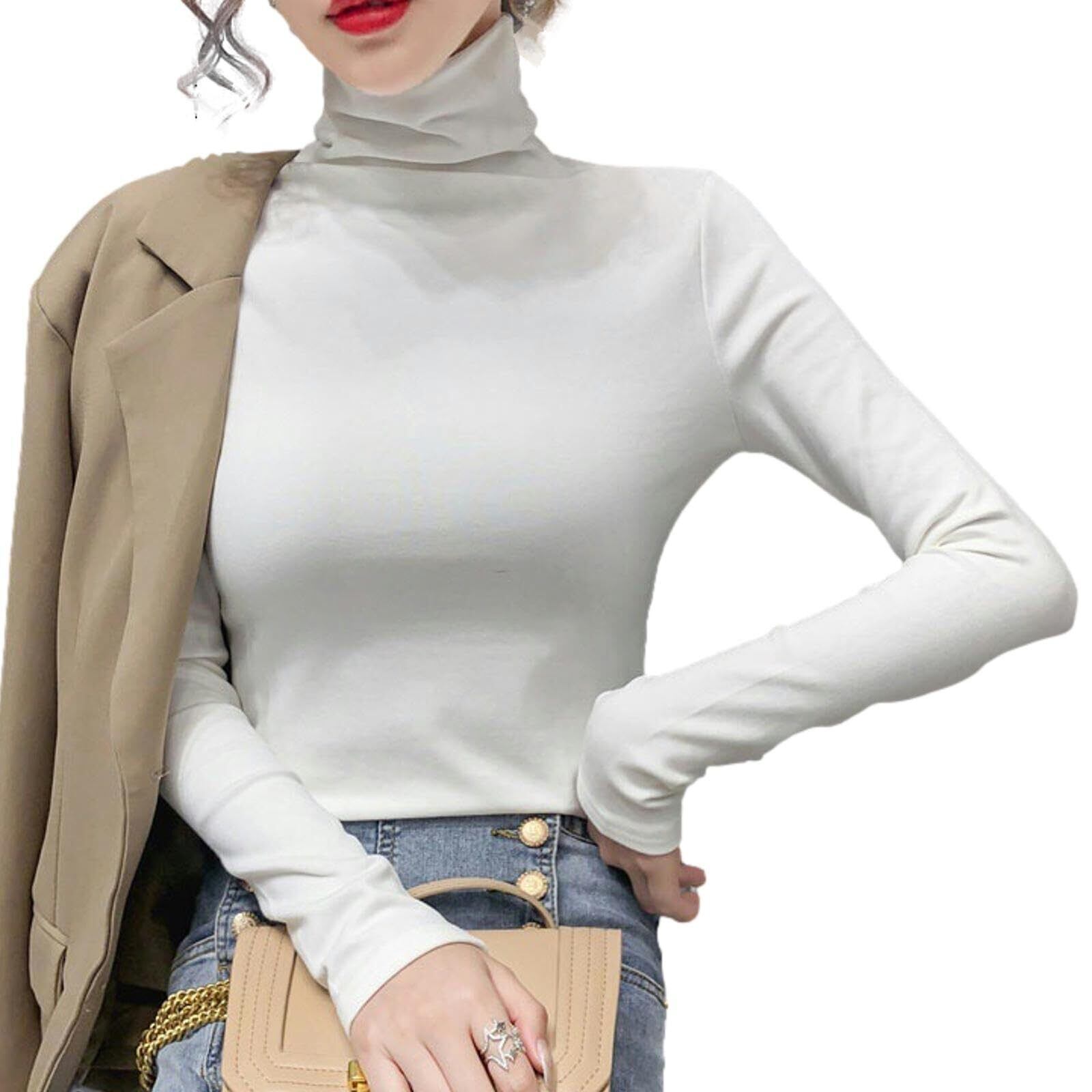 [Nestkanina] カットソー 長袖 レディース ハイネック あったか 裏起毛 インナー 無地 あたたかい 保温 防寒 トップス かわいい タートルネック おしゃれ きれいめ タイト シルエット スリム TSHT050 (L, ホワイト)