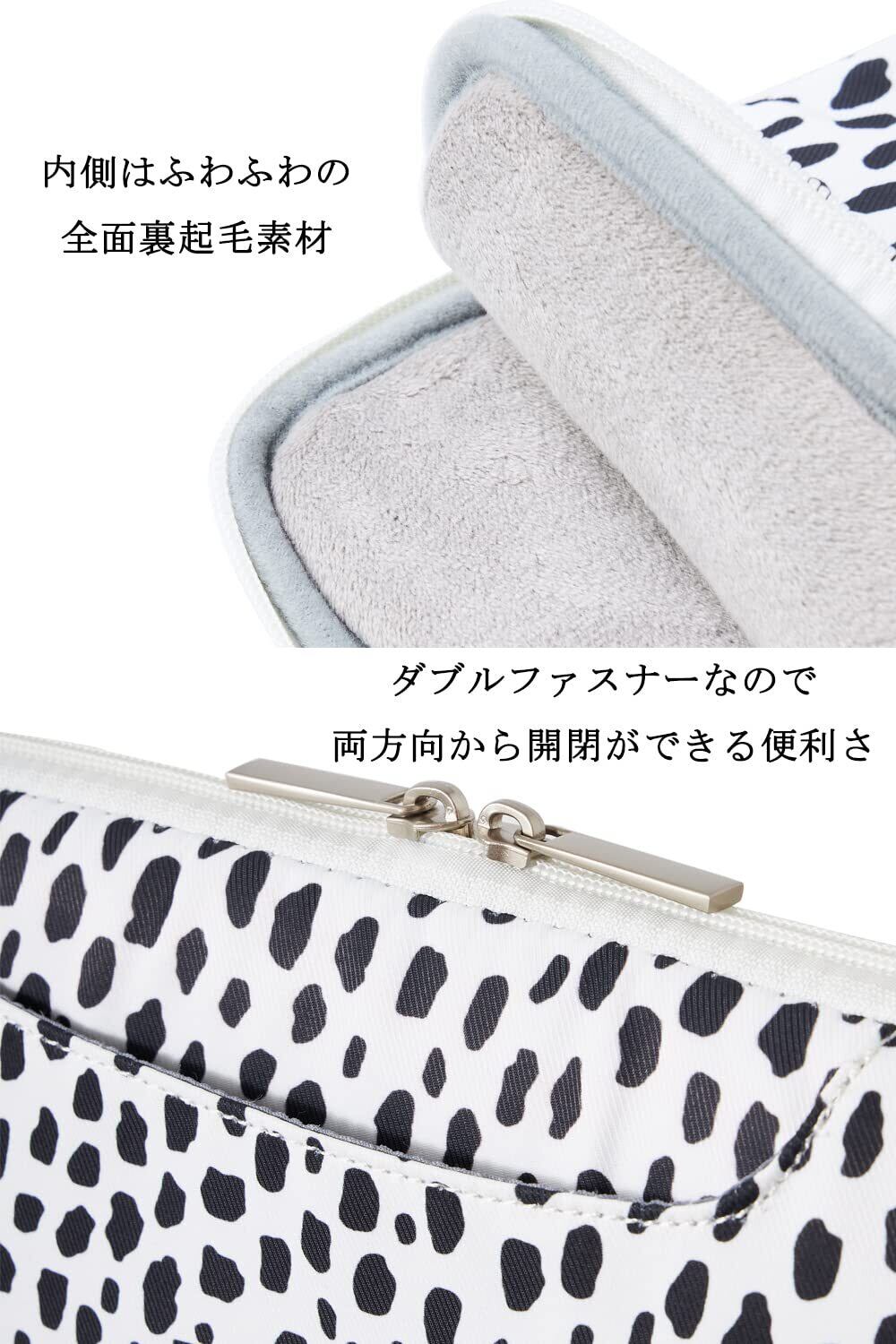 「内側はふわふわの全面裏起毛素材」内側は全面にクッション性に優れたベルベット生地を使用し、柔らかいふわふわの手触りで大切なpcを衝撃から守ります。