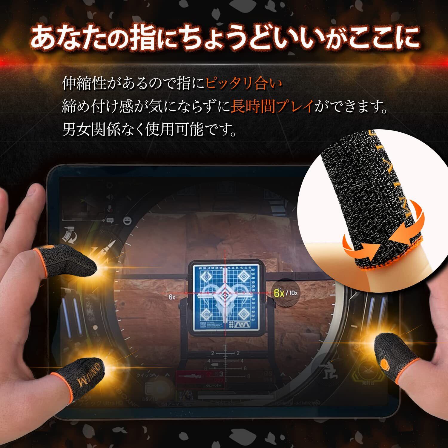 【ゲーマーの課題に向き合った指サック】フリック・タップ・ホールド操作の障壁となる手汗や引っ掛かりをブロックし、FPS・リズムゲーム・MOBAなどのゲームでパフォーマンスを向上します。