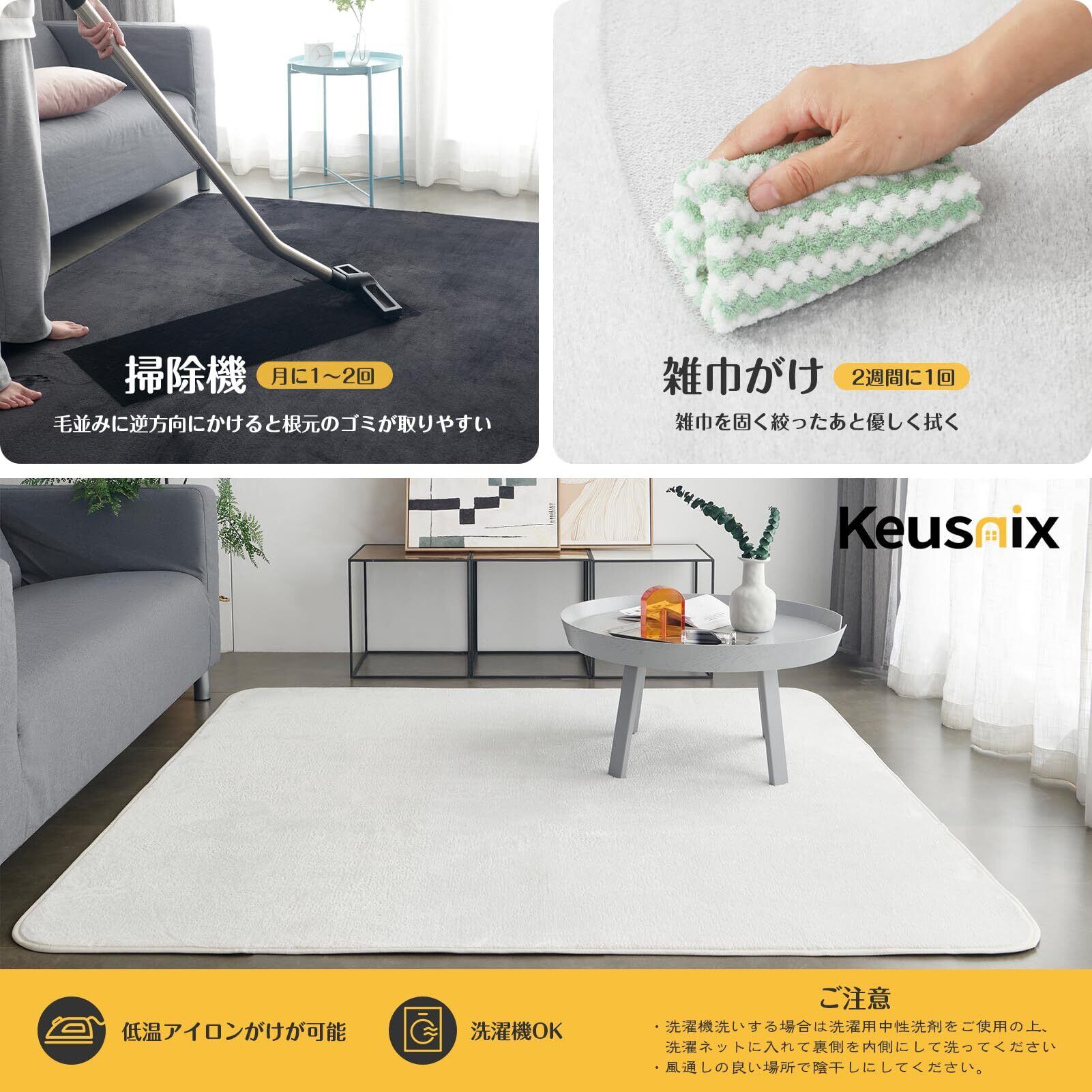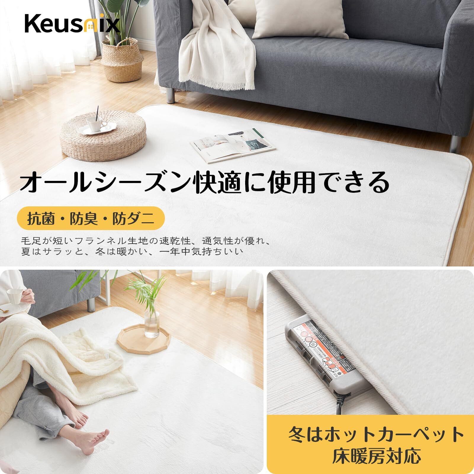 Keusnix カーペット ラグ ラグマット滑り止め付 洗える 135×185cm 約1.5畳 絨毯 防ダニ 抗菌 防臭 オールシーズン快適に使用 床暖房 ホットカーペット対応 ふわふわ肌触り フランネルラグ 無地 ホワイト