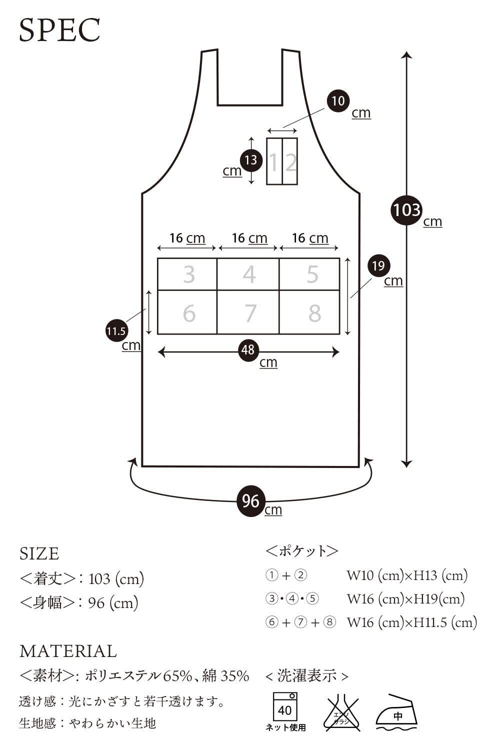 【素材構成】:ポリエステル65% 綿35%【サイズ】着丈:103cm 身幅:96cm