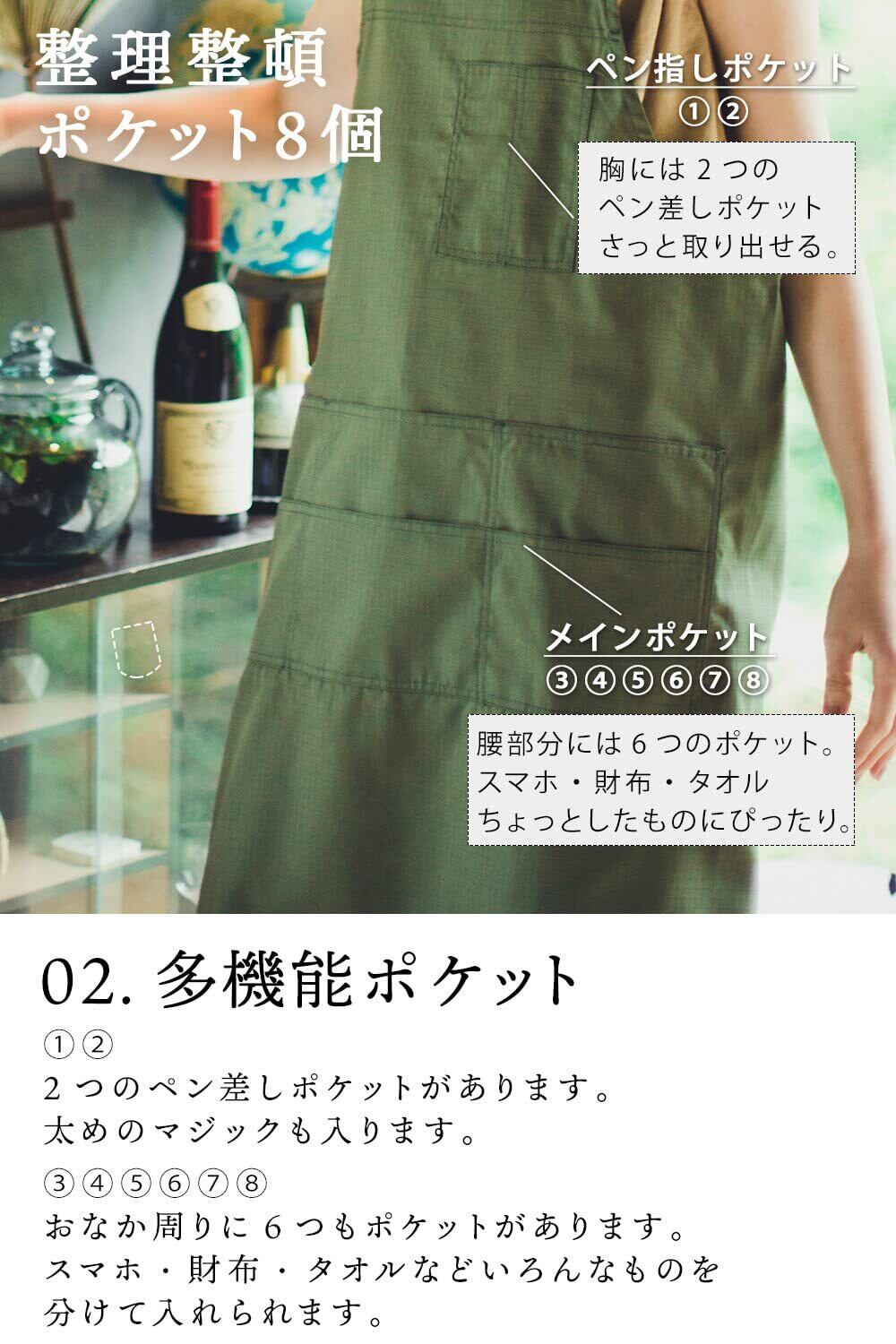 【便利な多機能ポケット付】計8つのポケット付。ペンが入るポケットに財布やスマホ、メモ帳などが入るポケットがついています