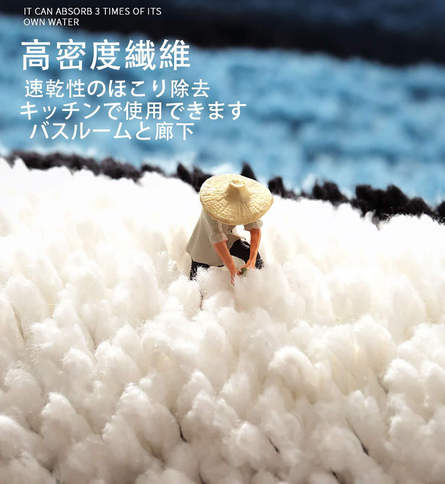 3.【丈夫で耐久性】緻密な織り技術、ふわふわの厚み、糸くずの出ない、縫い目の強さ、耐久性のあるエントランスマットとバスルームマット。