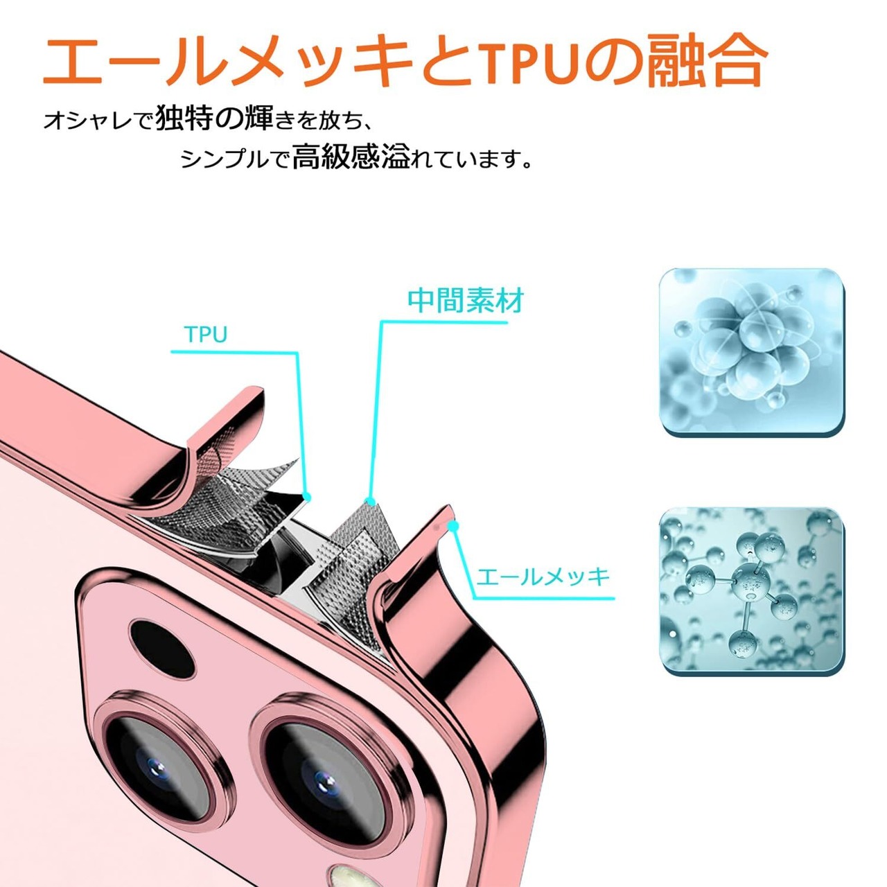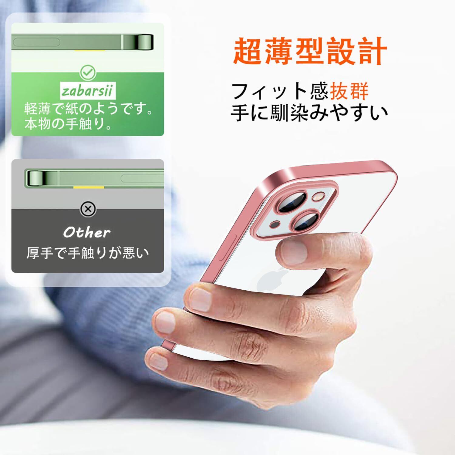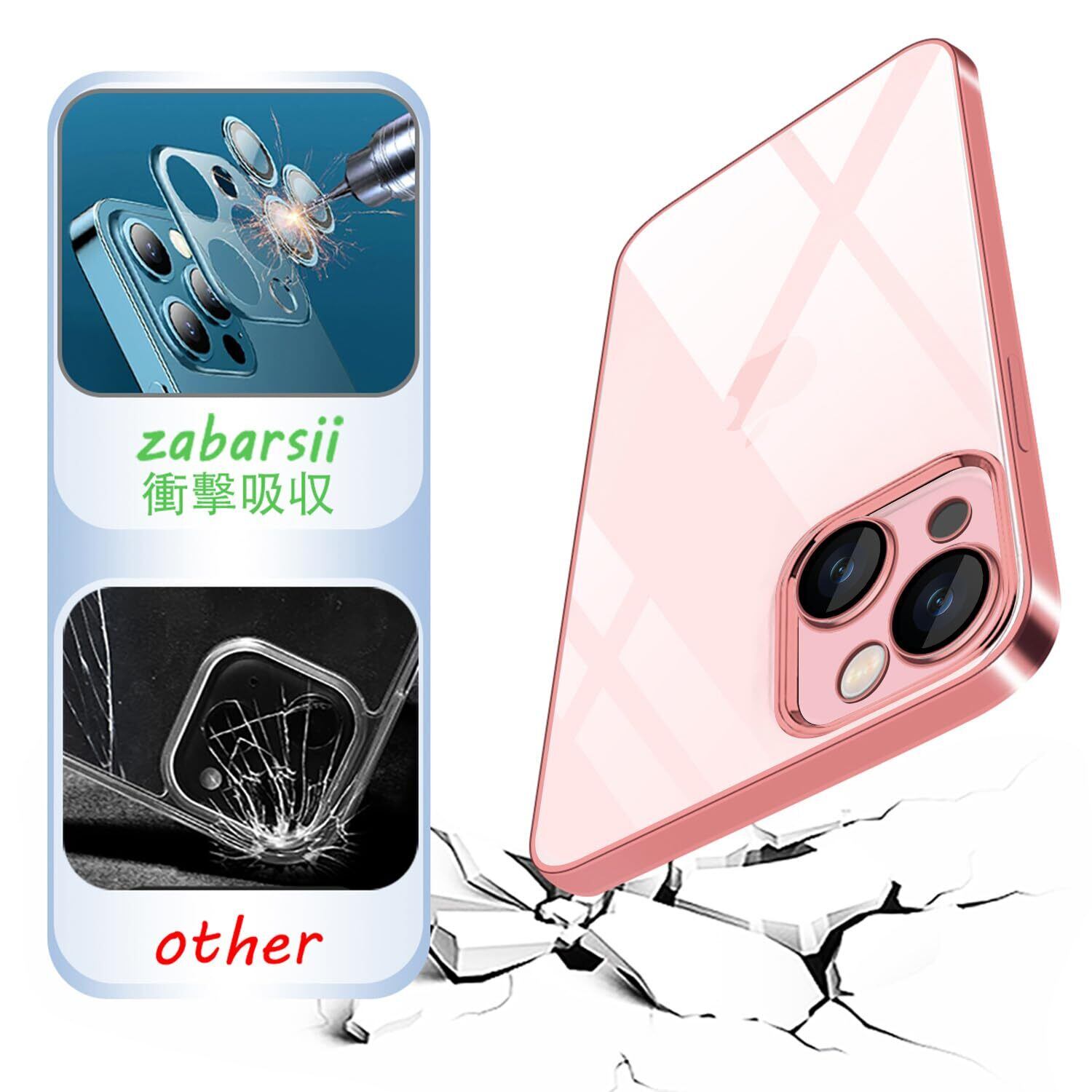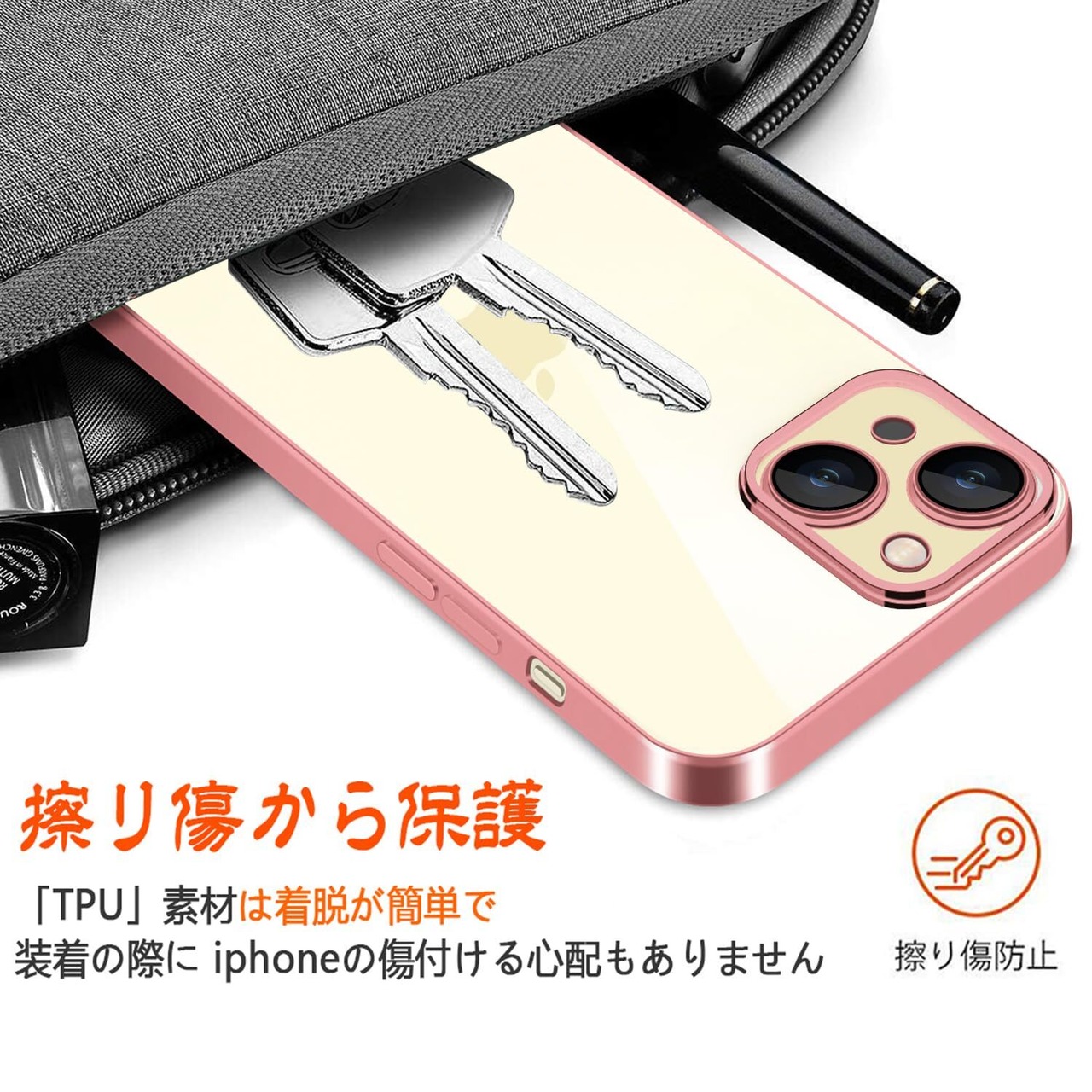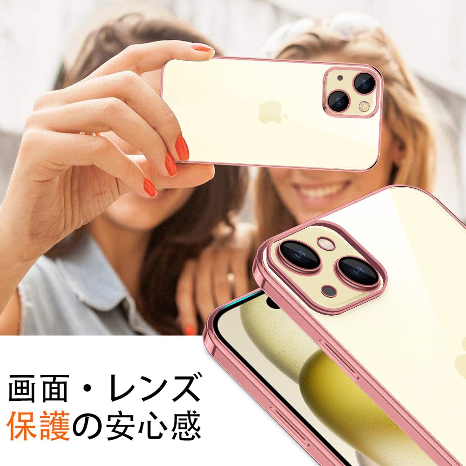 Zabarsii iPhone 15 用の ケース クリア アイフォン 15 用の カバー 透明 スマホケース 耐衝撃 TPU 薄型 【カメラレンズ保護付き】スリム メッキ加工 黄変防止 ストラップホール付き ワイヤレス充電対応 ローズゴールド