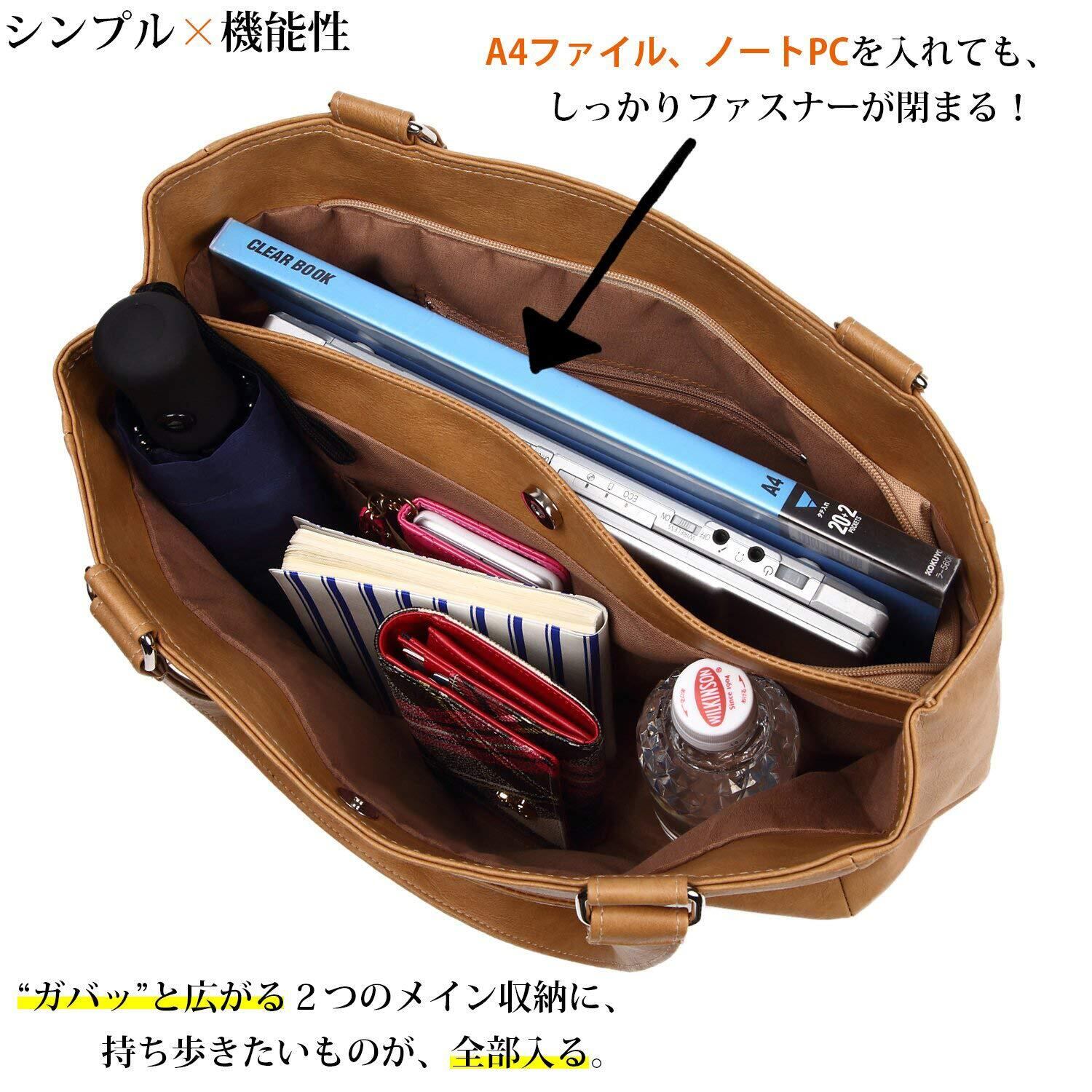 [REOTTI] トートバッグ A4対応 2段ポケット 無地 シンプル