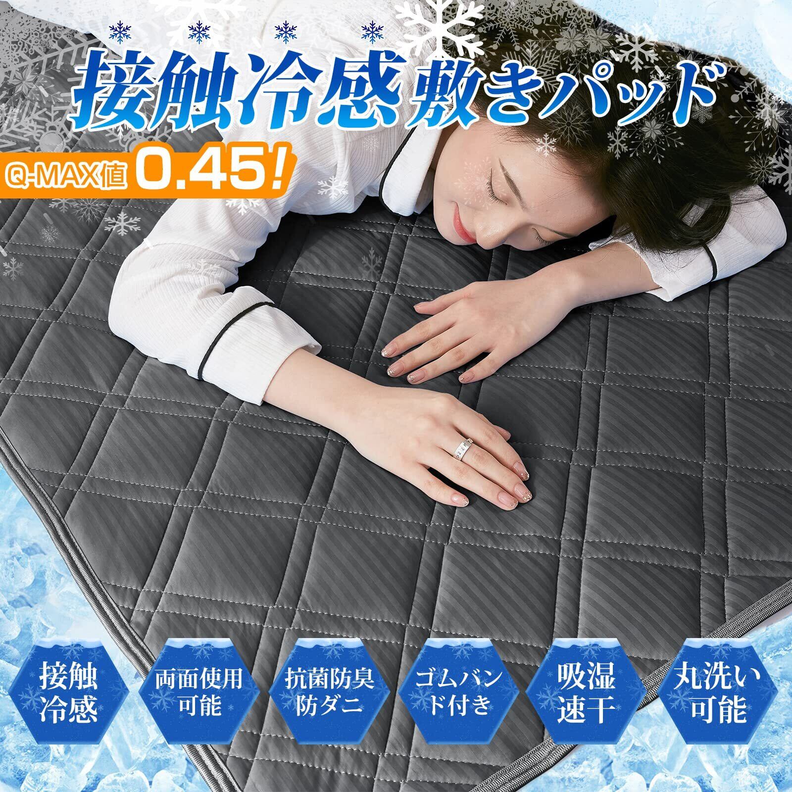 【超冷感持続・Q-MAX値は0.45】暑さで寝苦しくなる夏の時期におすすめの接触冷感敷きパッド。熱伝導により触れた部分がひんやり感じる接触冷感素材です。表地はQ-MAX値0.45のコンタクトクール生地を使用しており、肌に触れるとすぐに涼しくなり、夏でも快適に使用できる。冷房なしの時にすごく役立ち、エコで快適な睡眠をゲット!冷房や扇風機などと一緒に使用してひんやり感がアップし、超おすすめですので、ぜひ試してみてください。