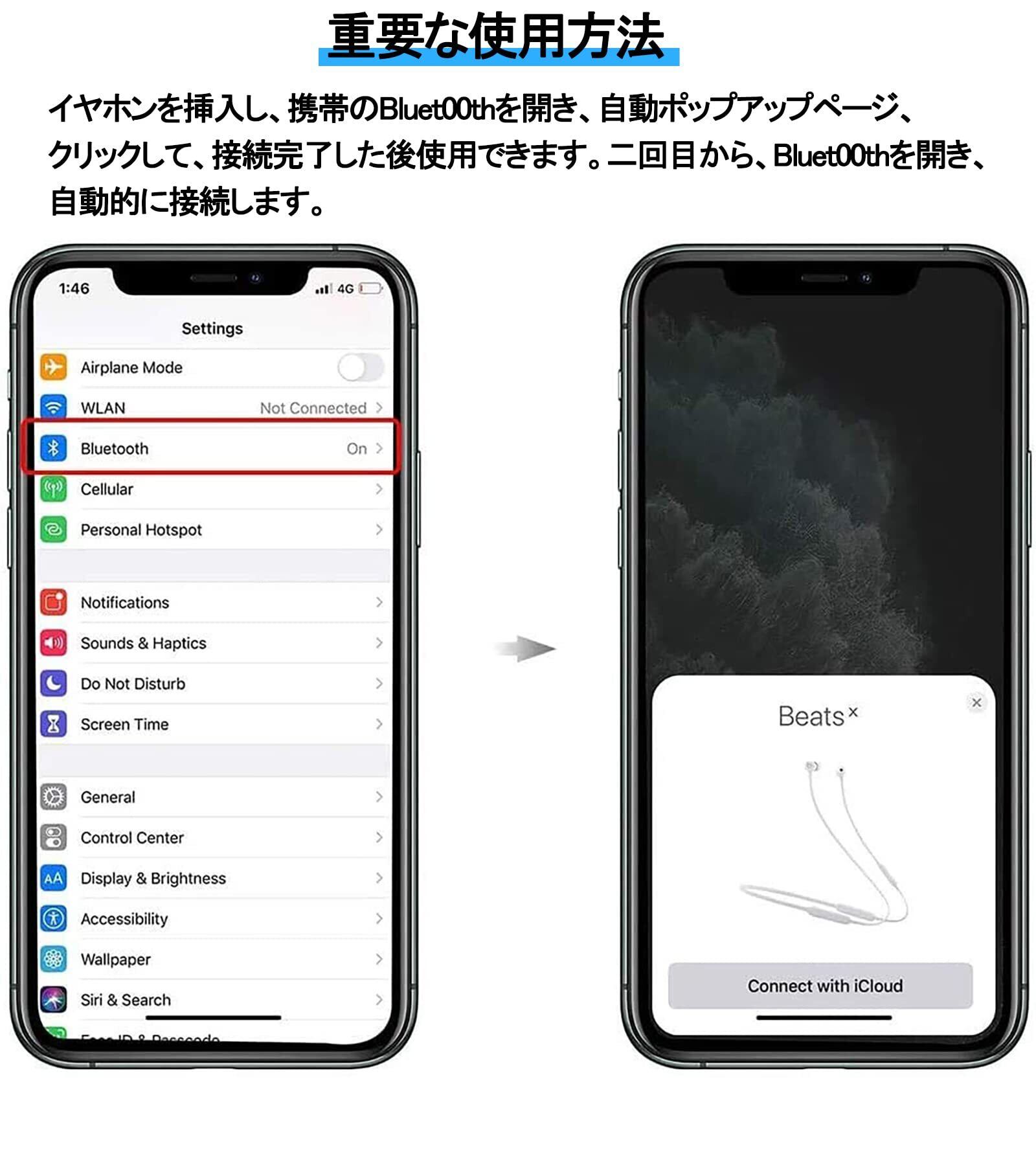 【使用方法】有線イヤホンを挿入し、携帯のBluet00thを開き、自動ポップアップページ、クリックして、接続完了した後使用できます。二回目から、Bluet00thを開き、自動的に接続します。