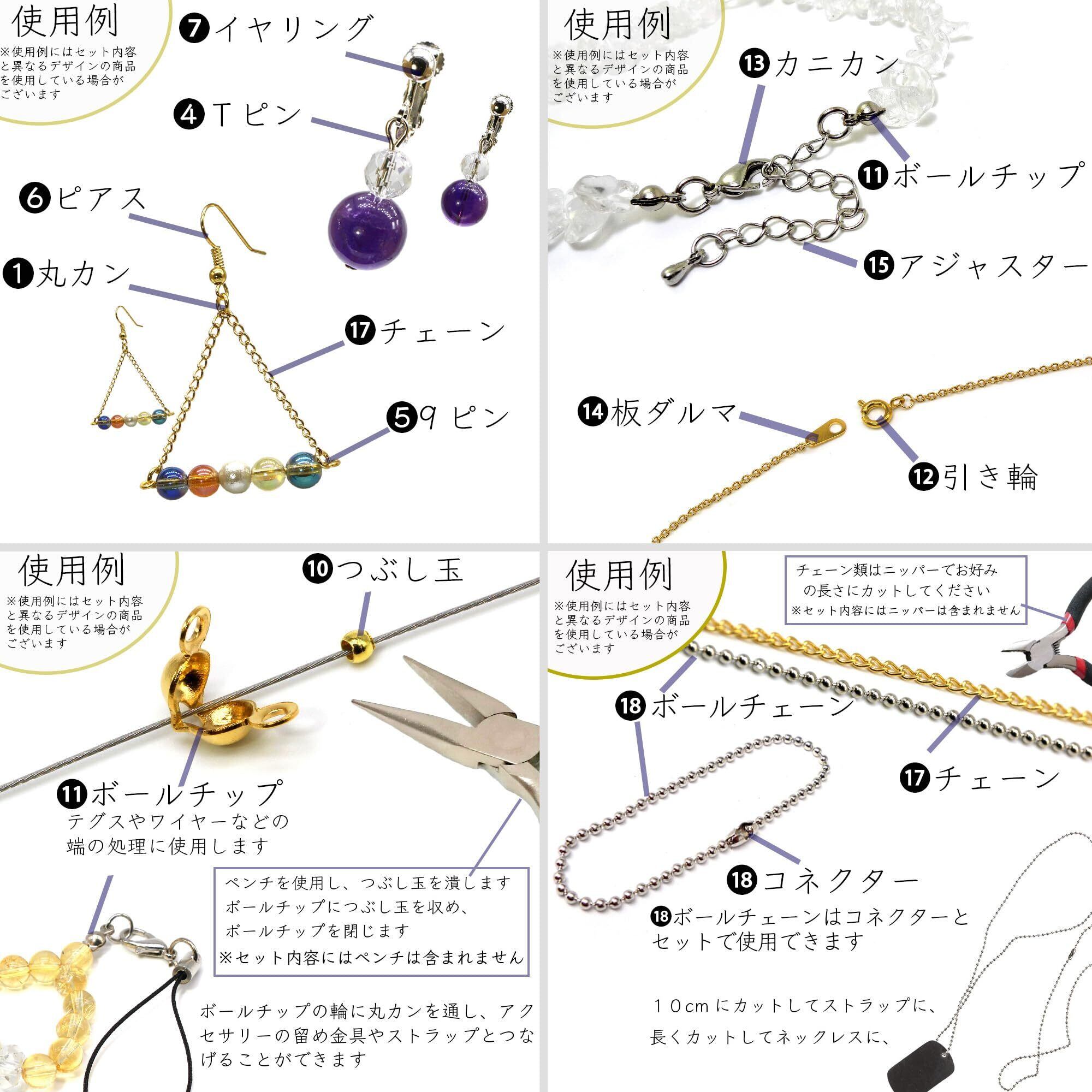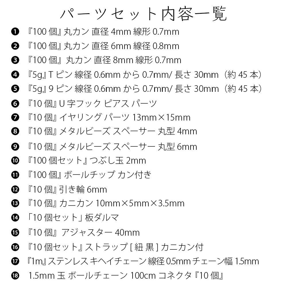 『10個 メタルビーズ スペーサー 丸型 6mm 』『100個セット つぶし玉 2mm』 『100個 ボールチップ カン付き』 『10個 引き輪 6mm』 『10個 カニカン 10mm×5mm×3.5mm』 『10個 板ダルマ』