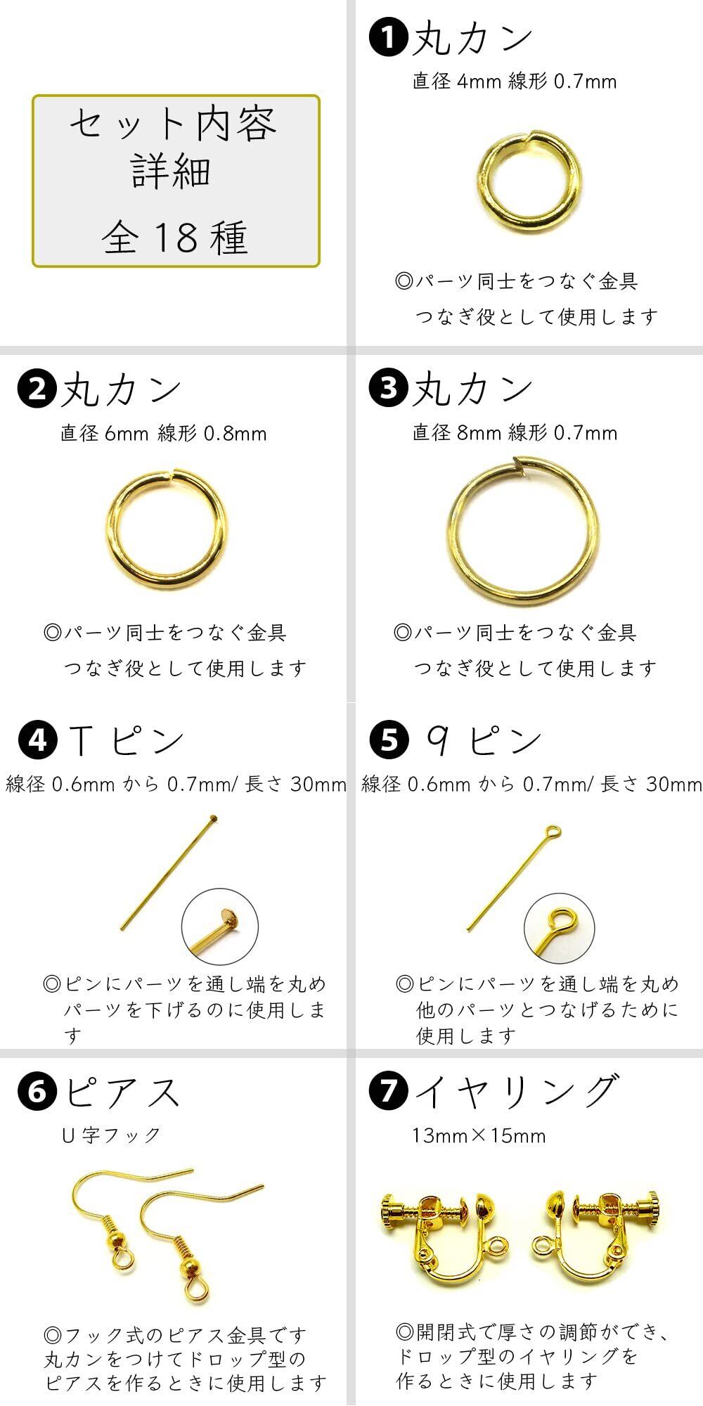 セット内容 『100個 丸カン 直径4mm 線形0.7mm』 『100個 丸カン 直径6mm 線径0.8mm』 『100個 丸カン 直径8mm 線形0.7mm』『5g Tピン 線径0.6mmから0.7mm/長さ30mm(約45本前後)』