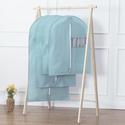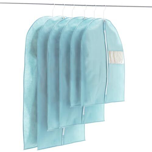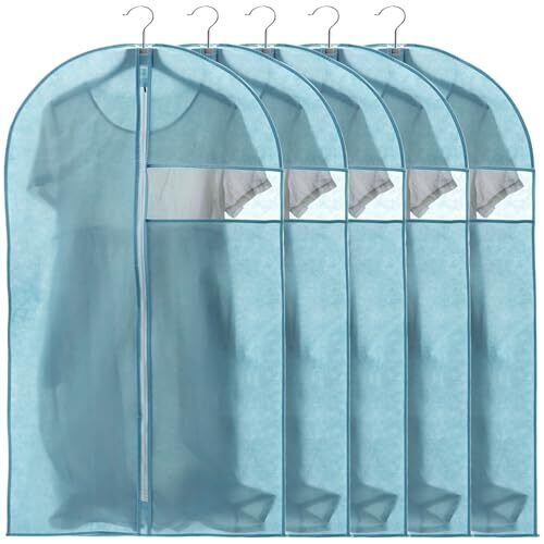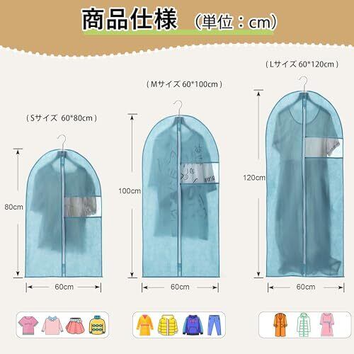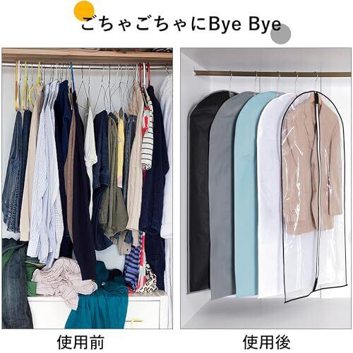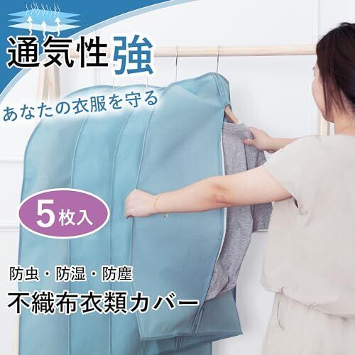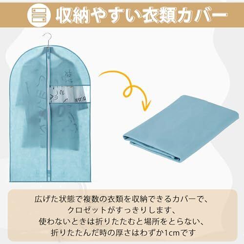 VECELO 衣類カバー 防塵カバー スーツカバー ハンガー 5枚組 ジッパー付き 湿気取り 防汚 衣装カバー 可視窓付き コート ダウンジャケット Tシャツ 半袖パンツ収納袋 透明窓付き 折り畳み可能 120CM