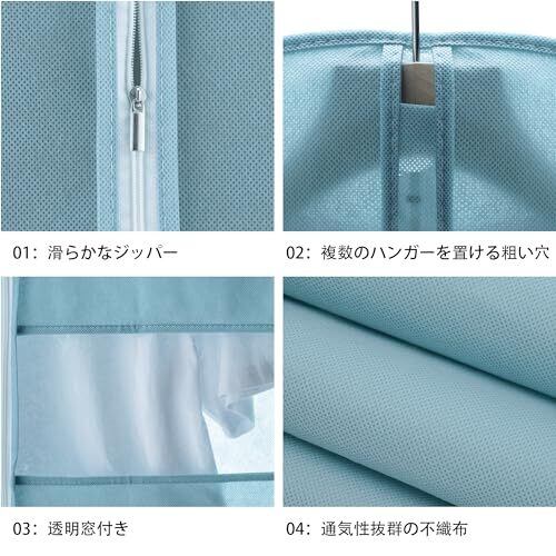 【通気性が良い材料】不織布で作られた衣類カバーは衣装を守りながら優れた通気性をお持ちます、内部の湿気を溜めらず、大事な衣装を守ることができます。