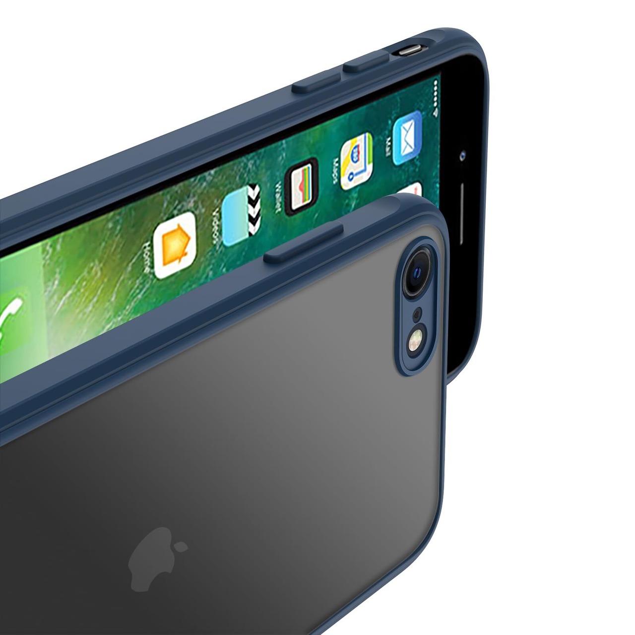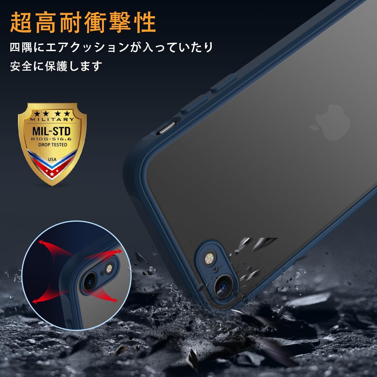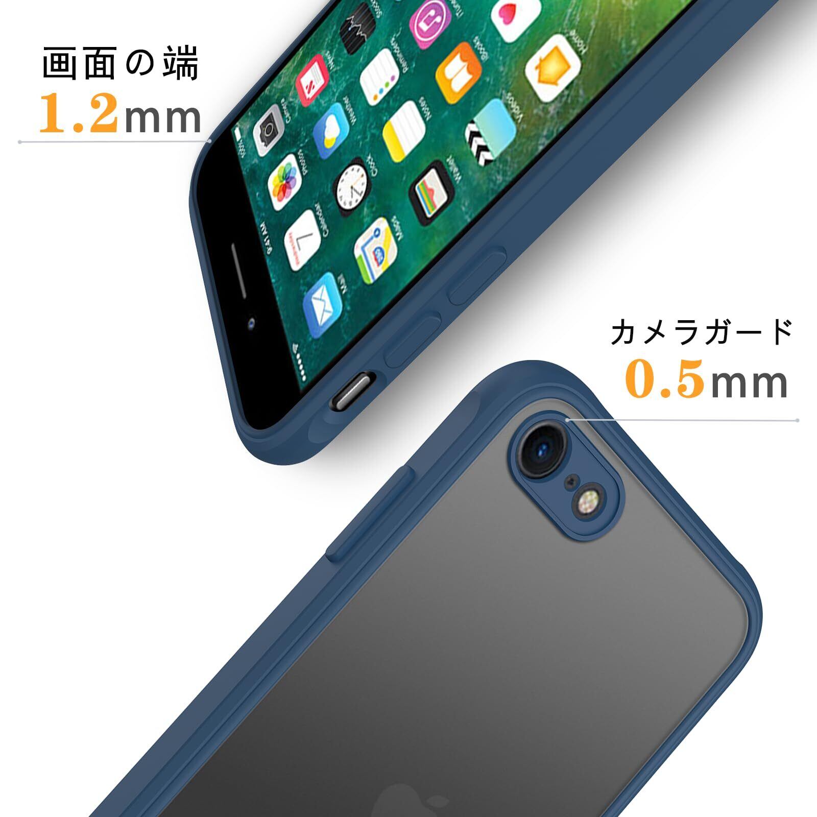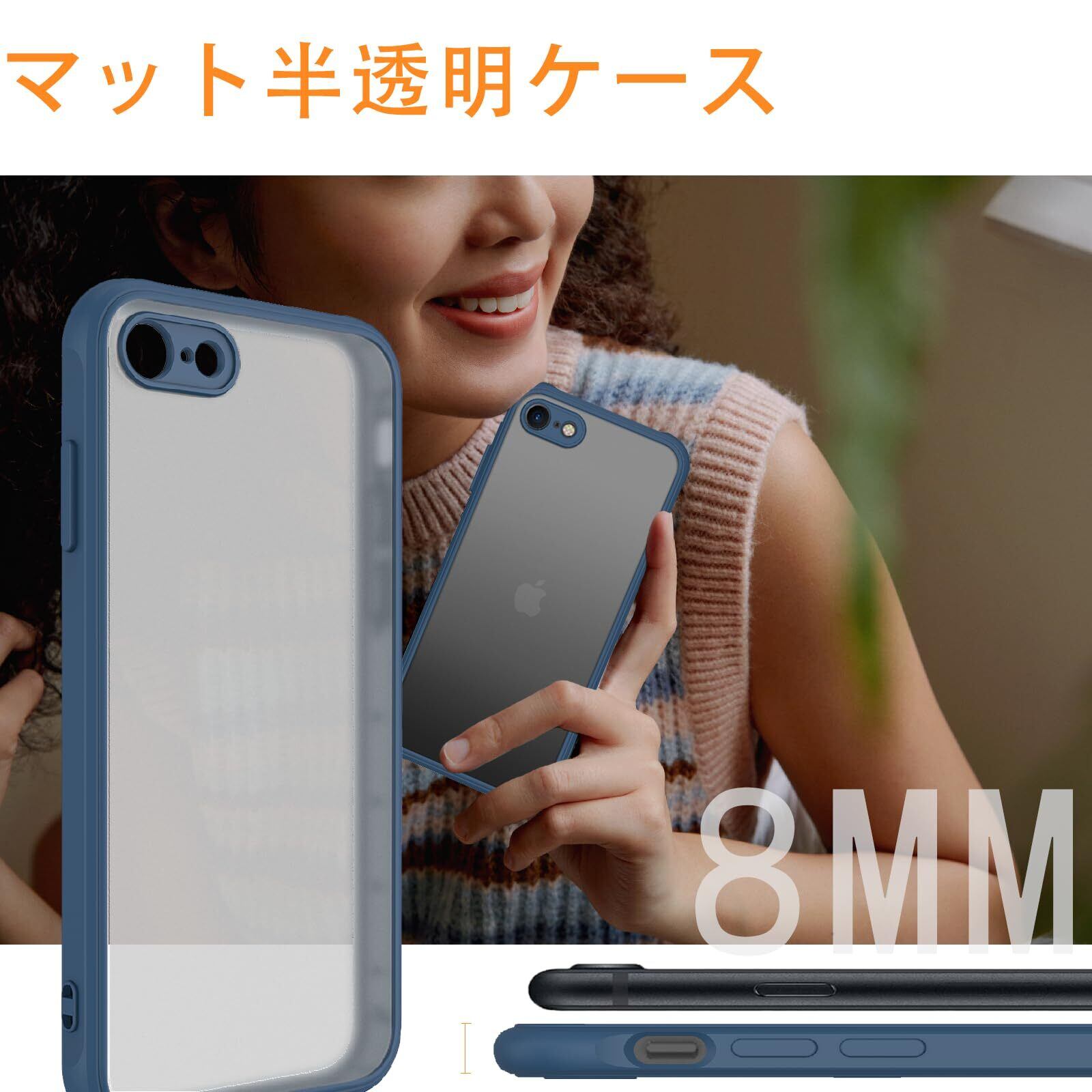 iPhone SE ケース 第3世代 第2世代 iPhone 7/8 マット 半透明 スマホケース 米軍MIL規格 耐衝撃 iPhone SE2 ケース ワイヤレス充電 黄ばみなし 指紋防止 アイフォン SE3 SE2 7 8 用 カバー 4.7 インチPinLiSheng,青