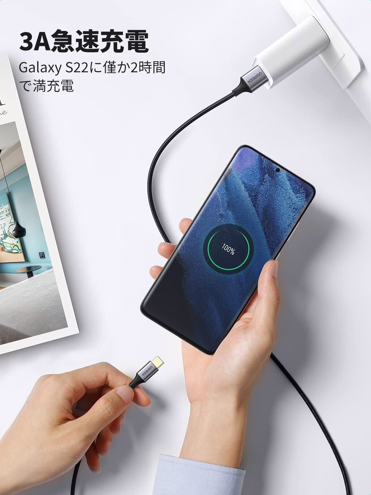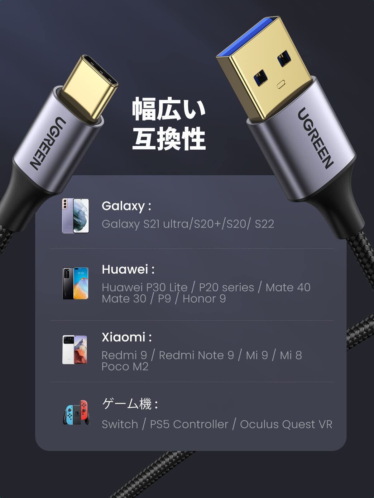 UGREEN USB 3.0 typec ケーブル Quick Charge 3.0 usb c ケーブル VR 急速充電 5Gbps データ転送 ナイロン編み 高耐久性iphone17シリーズ Galaxy S21 S20 Flip Note 9T Note 8 Xperia 10 II PS5 などに対応 1M iphone17シリーズ