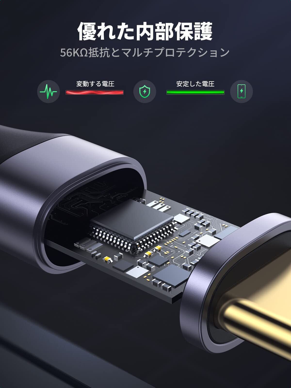 高品質の安全保護:56KΩのプルアップレジスターを採用してケーブル内部の抵抗を最小化しておりますので、過電圧、過熱、過電流、ショート防止等の多重保護の安全性と信頼性を向上します。