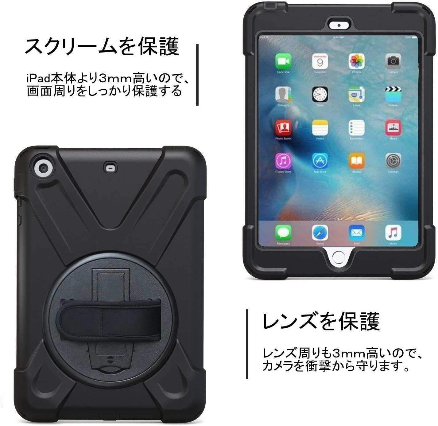 iPad mini123 ケース SIBEITTU iPad mini ケース/iPad mini2 ケース/iPad mini3 ケース アイパッド ミニ カバー 肩掛け ショルダー シリコン 360度 回転 ハンド ホルダー ストラップ スタンド キッズ 子供 純正 耐衝撃 落下防止 防塵 頑丈 丈夫 片手 耐久 ハード iPad Mini 初代第二三世代 用 ブラック