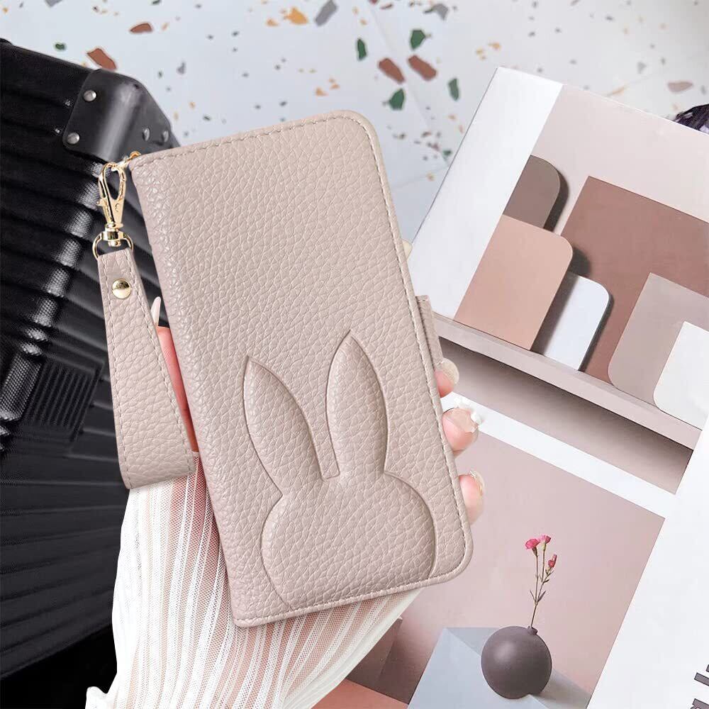 ✿【高級素材、柔らかいTPU ケース手帳型】①肌感PUレザー +柔軟なTPUカバーと組み合わせ、厳選された革を採用しており、目に見える高級感と抜群な、肌のような手触り感、長時間持っても汗をかきません、夏に最適!②スマホ本体はめ込み部分はな柔らかいTPU(シリコン)ケースです、TPU素材を使用したソフトカバーにより、軽量と耐衝撃を兼ね備えました、は取り付け・取り外しが簡単で、スマホ本体への損傷の心配ありません③男の子にも女の子にも適した、カップルの携帯電話ケースとして使用できる色がたくさんあります,うさぎが印象的でかわいい