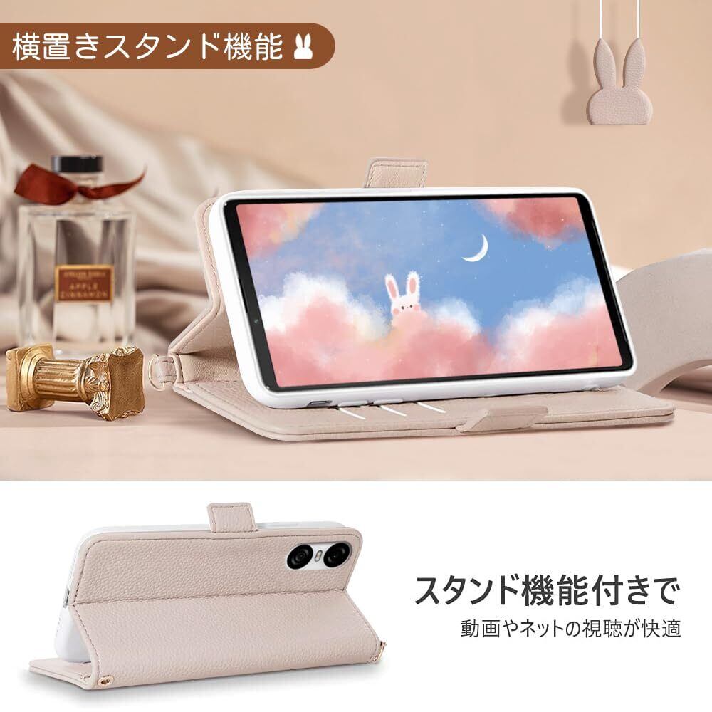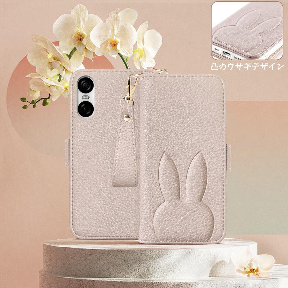 Kahper For Xperia 10 VI ケース 手帳型 かわいい兎 SO-52E /SOG14 ケース手帳型 人気 SO-52Eケース SOG14 ケース xperia 10 マーク6 横置き機能 スマホケース エクスペリア 10 VI ケース 女性 おしゃれ 可愛い 財布付き エクスペリア 10 6 ケース 便利 カード収納 動物 全面保護 男女兼用 贈り物 6.1",アプリコット