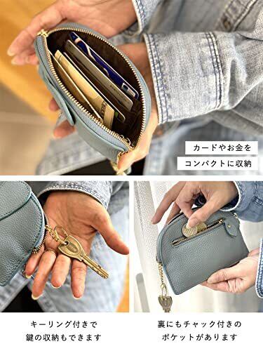 [ジゼル] ミニ財布 カードケース キーケース コインケース 牛革 本革 マルチケース ポーチ ゾウ 財布 小銭入れ 薄い レディース 小物入れ 軽量 かわいい プレゼント キャラクター(グレイッシュピンク)