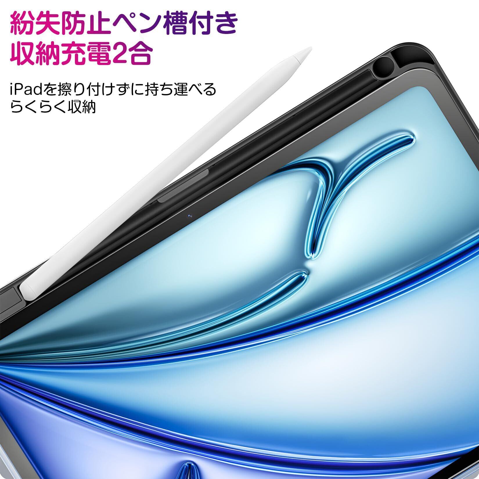 「Apple Pencil収納、充電対応」 便利なペンホルダーが付き、ペンシル紛失せずご安心利用頂けます。また、Apple Pencil ワイヤレス充電も可能なので、収納や持ち運びに便利です、いつでもどこでもiPadを快適に使えます。