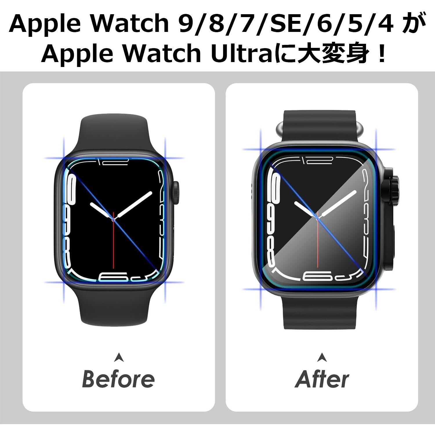 TALENANA for Apple Watchケース 45mm/44mm/41mm/40mm 瞬時にApple Watch Ultraに変身する 防水 series 9/8/7/SE/6/5/4 液晶保護フィルム+保護ケース+背面ケースの3 in 1デザイン 一体型 全面保護 液晶保護 防傷 耐衝撃 高透過率 (Series 9/8/7、45mm、ブラック)