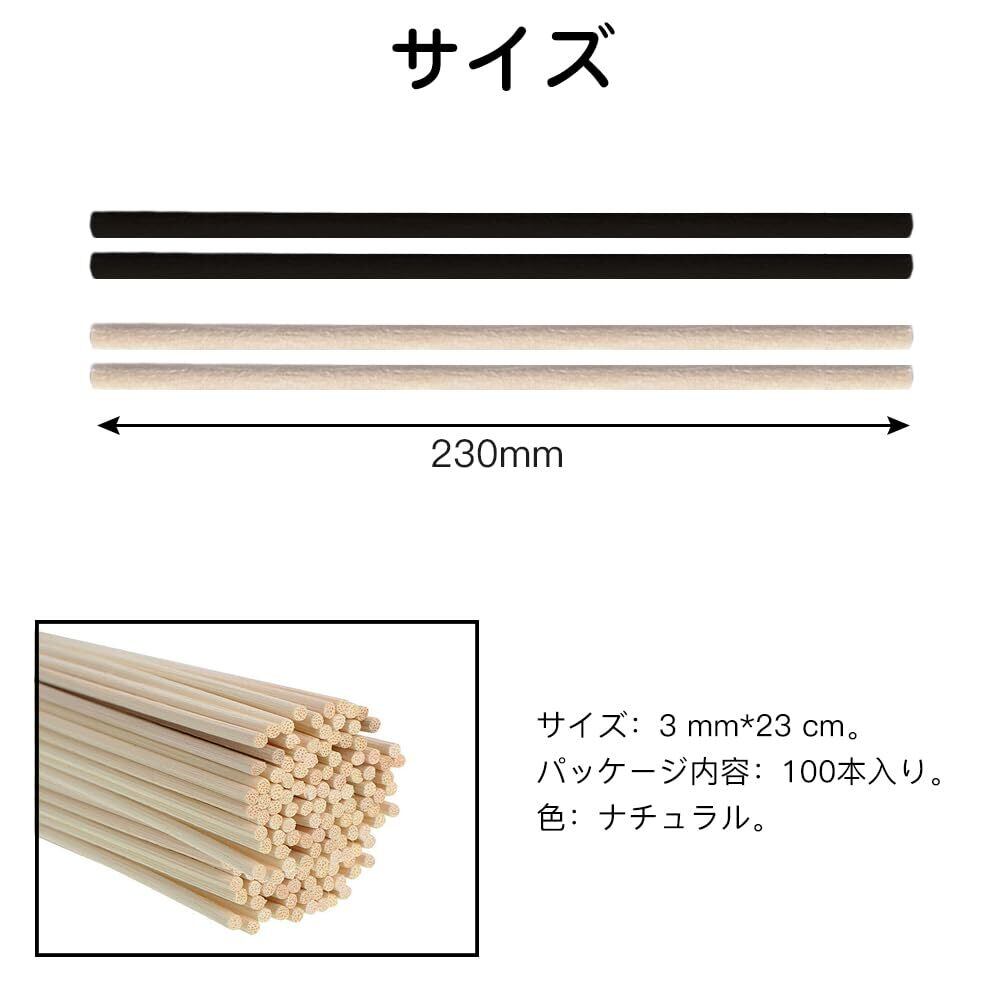 LIANHATA 100本 リードディフューザー用 ラタンスティック 3mm*23cm ルームフレグランス アロマリード 詰め替え用 リフィル リードスティック 芳香ディフューザバー リビング 洗面所 寝室 オフィス用 (ナチュラル100本)