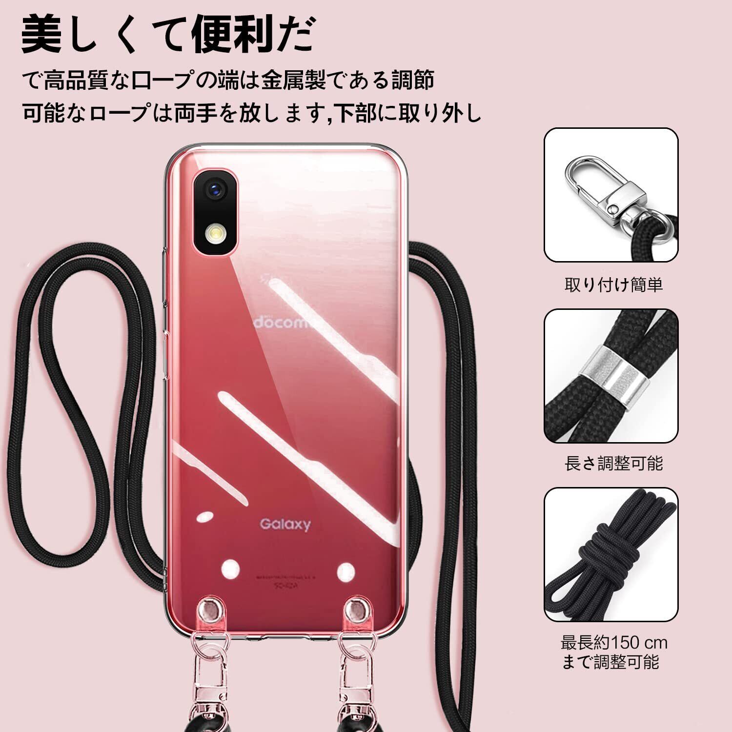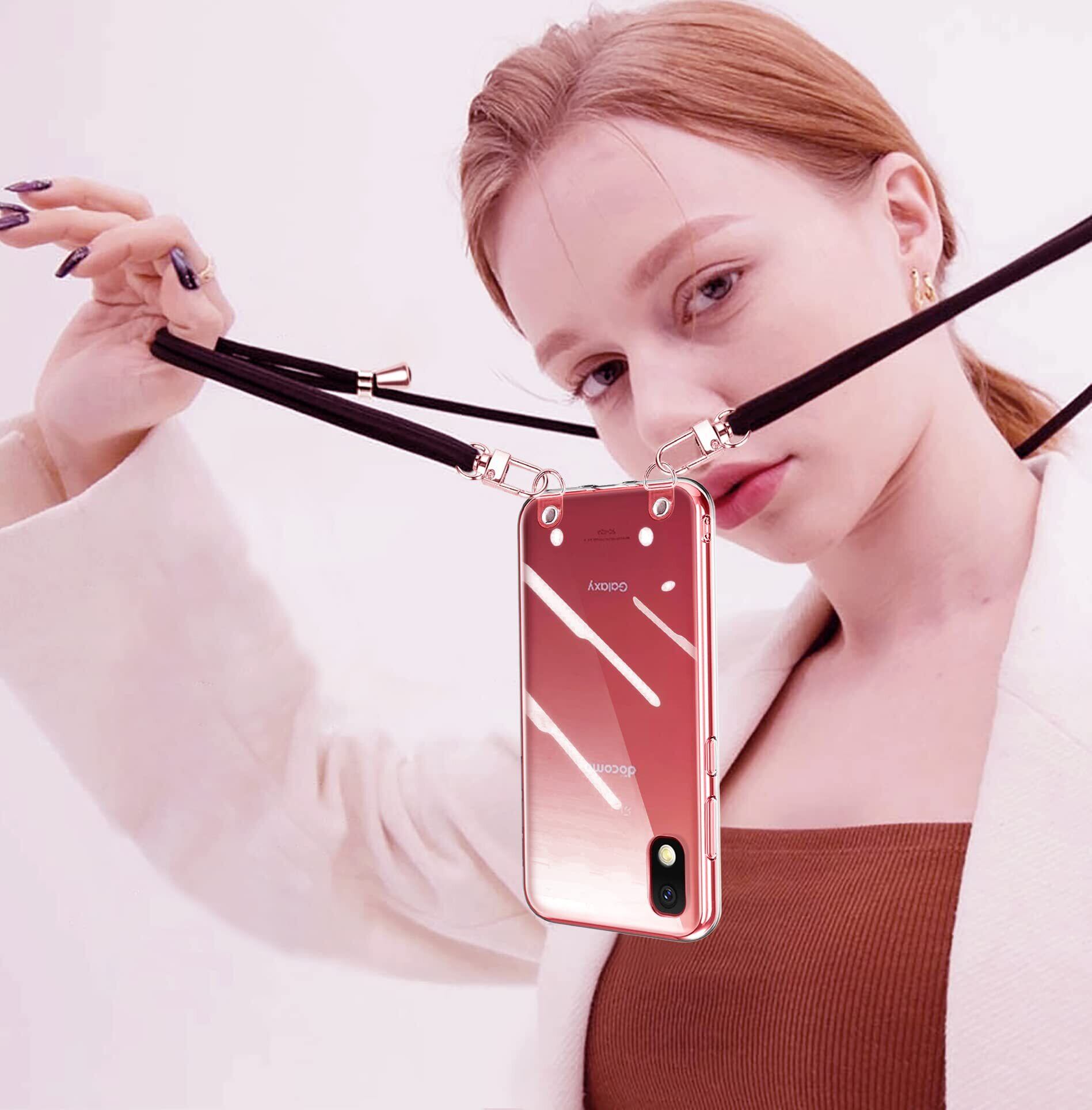 NISIILNG Galaxy A21 クリア ショルダー SC-42A SCV49 Galaxy A20 ケース SC-02M SCV46 Galaxy a21 / a20 スマホケース 肩掛け斜めかけ 縄掛け ストラップ付き スマホケース 透明 TPU 耐衝撃 薄型軽量 ギャラクシーA21/A20 5G スマホ シリコン カバー 長さ調整可能 取り外し可能 落下防止 紛失防止 (クリア)