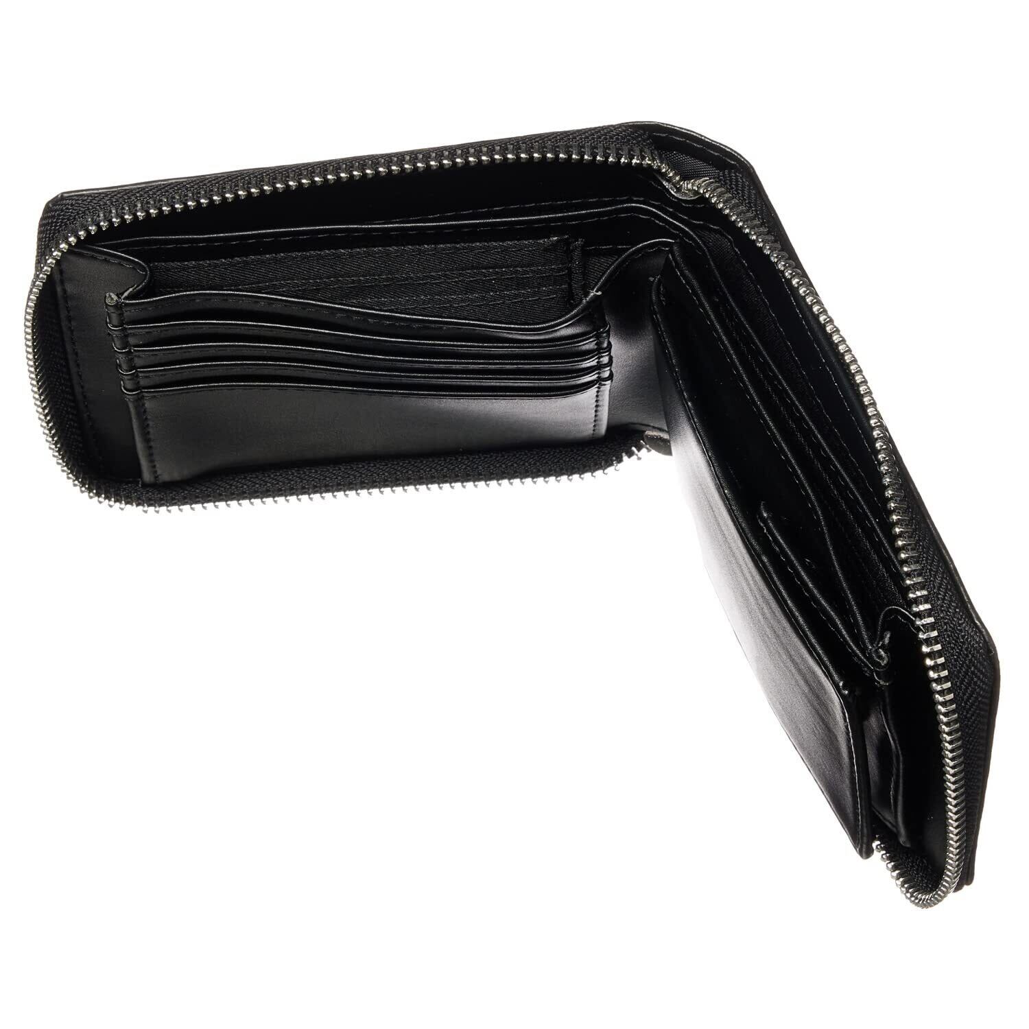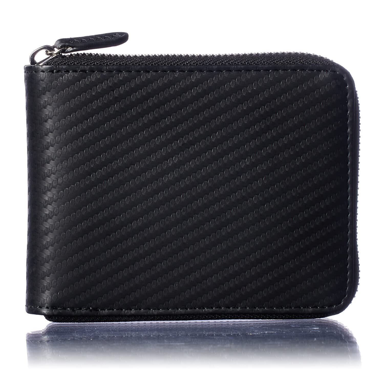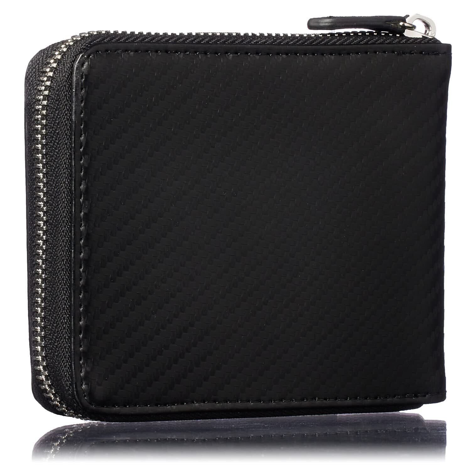 [VOICE] ヴォイス メンズ カーボンレザー 二つ折り 財布 『技あり』厚くならない ラウンドファスナー 使いやすい BOX型小銭入 プレゼント 用 ギフト 箱入り (Black/Black)