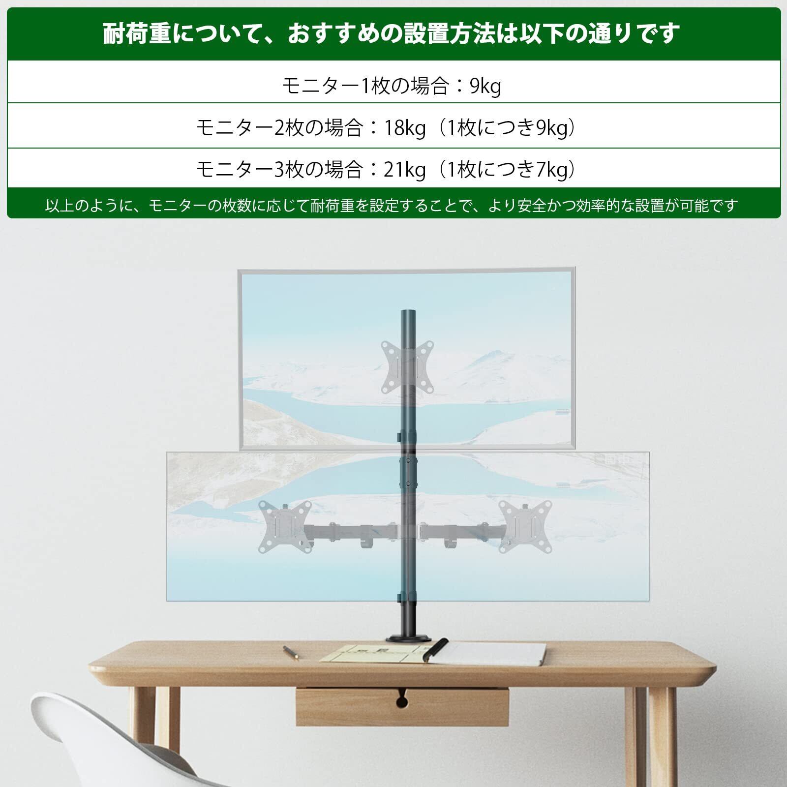 ご注意:重たいモニターをつけた場合、ポールがやや前に傾くことがございますが、仕様ですので、ご安心ください。