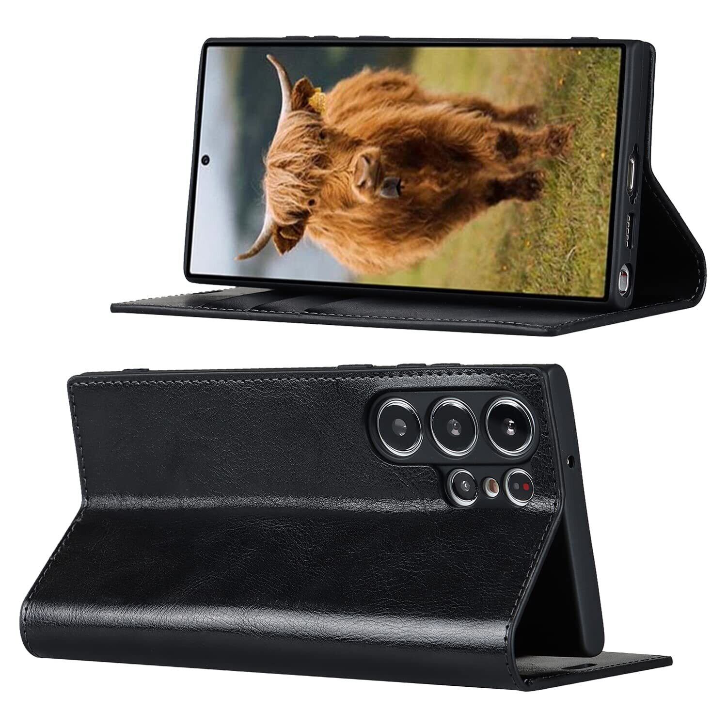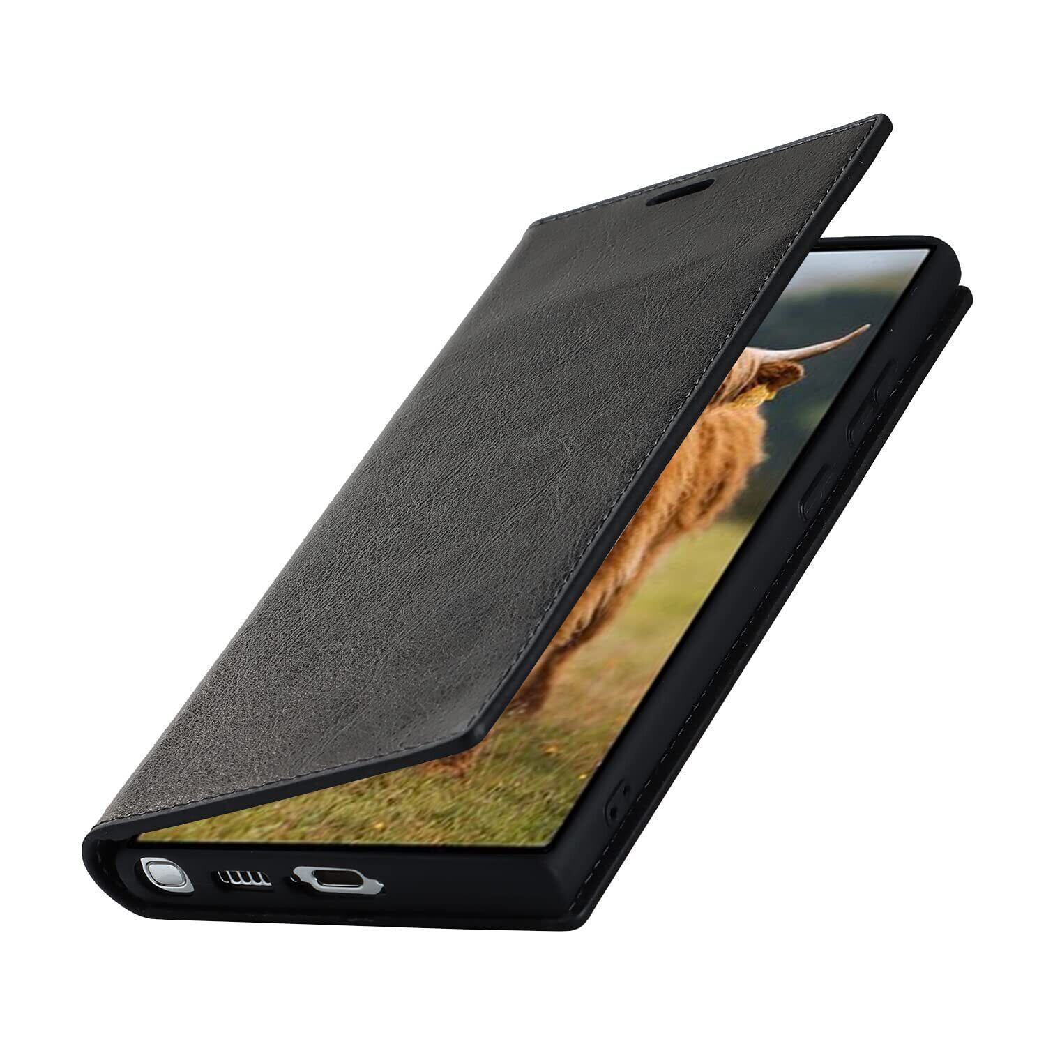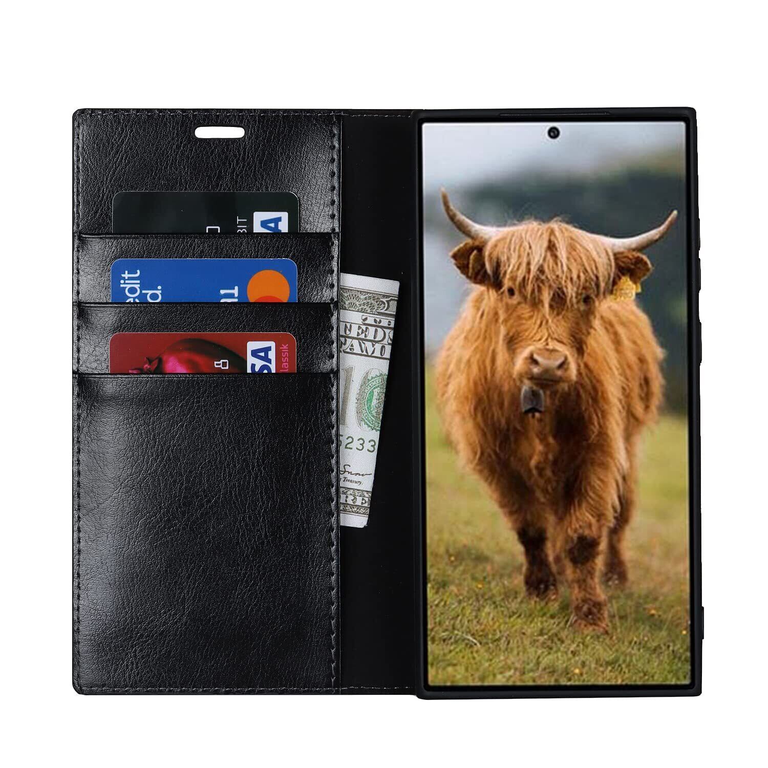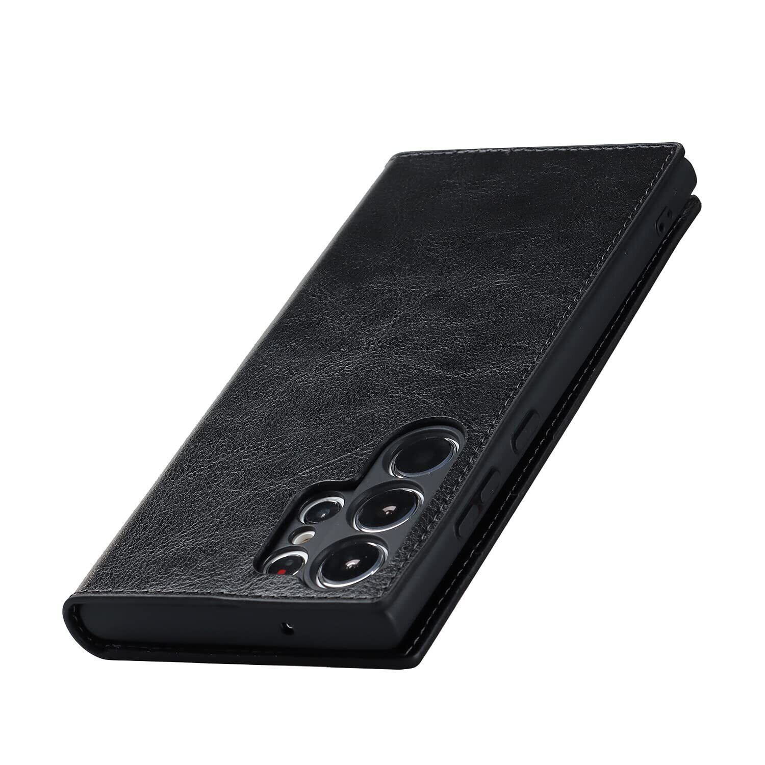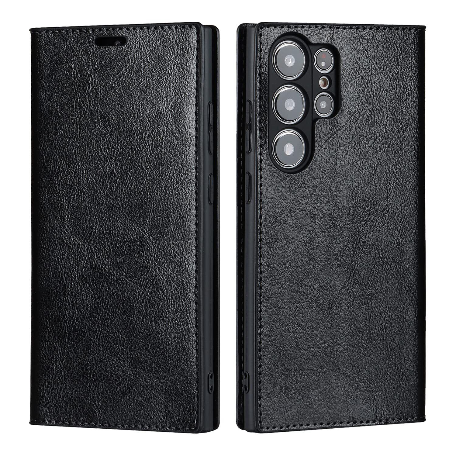 Eastwave for サムスン ギャラクシー S23 Ultra ケース for Samsung Galaxy S23Ultra 手帳型 for galaxys23ultra 財布型 カバー 収納ポケット 牛革製品 ポケット収納付き 4色 ブラック