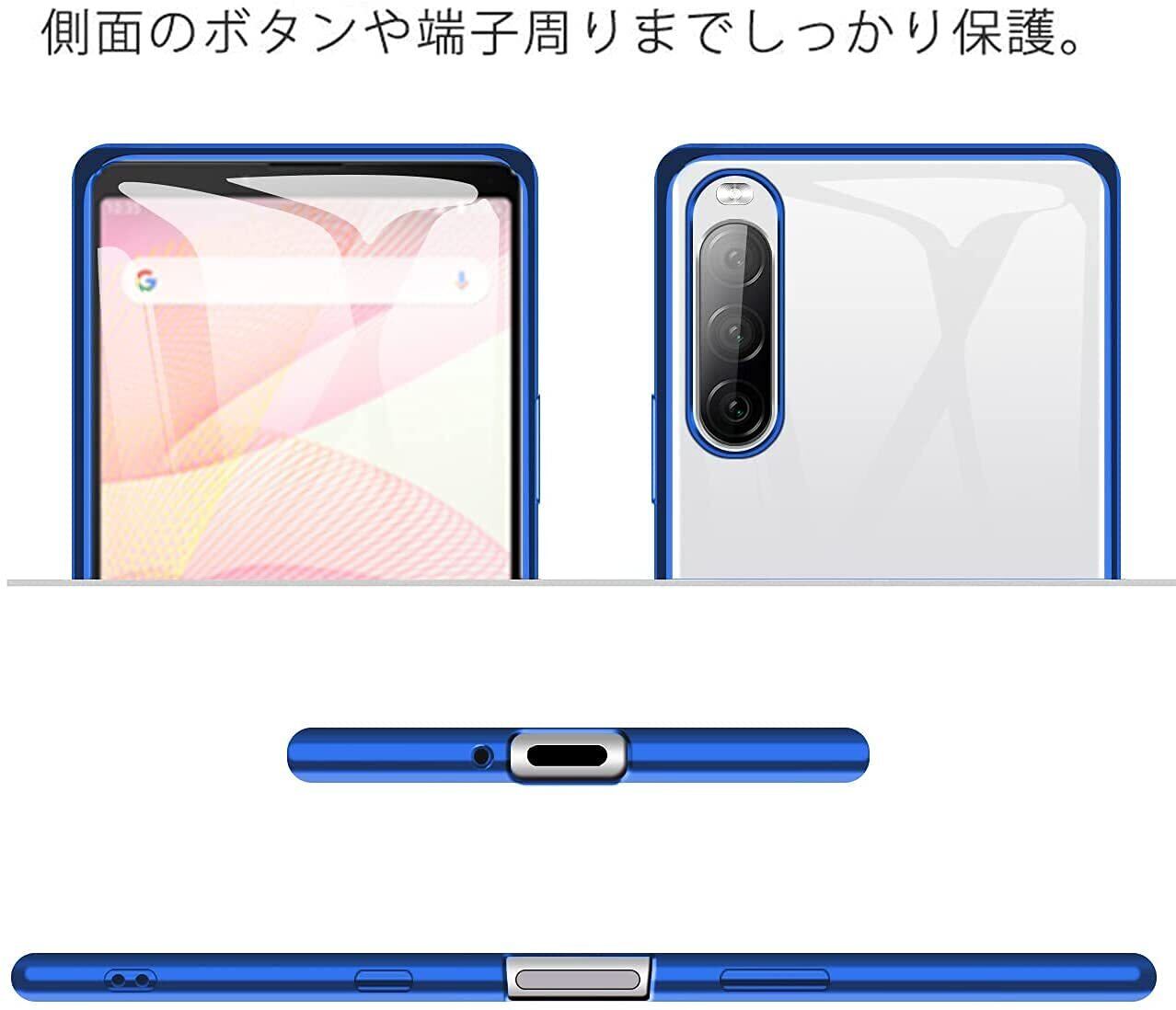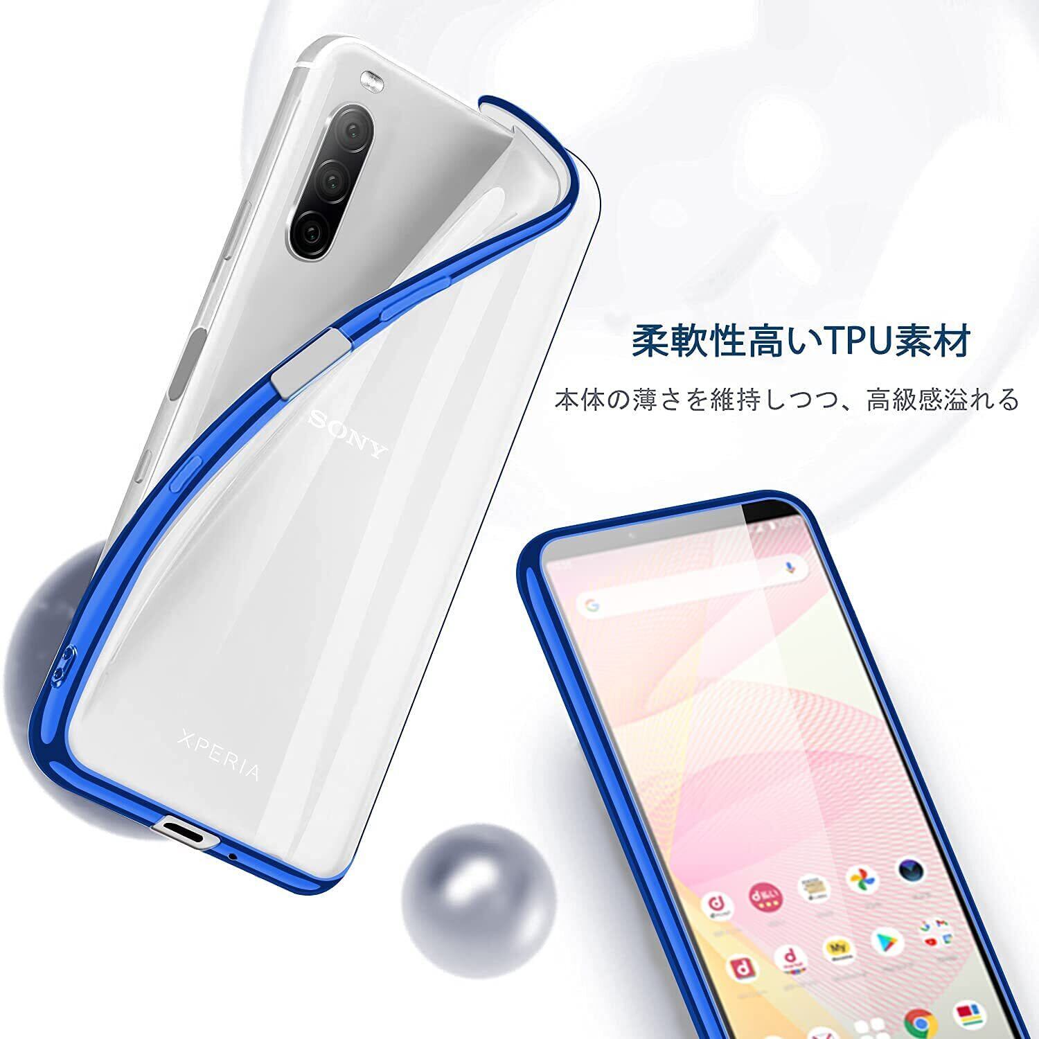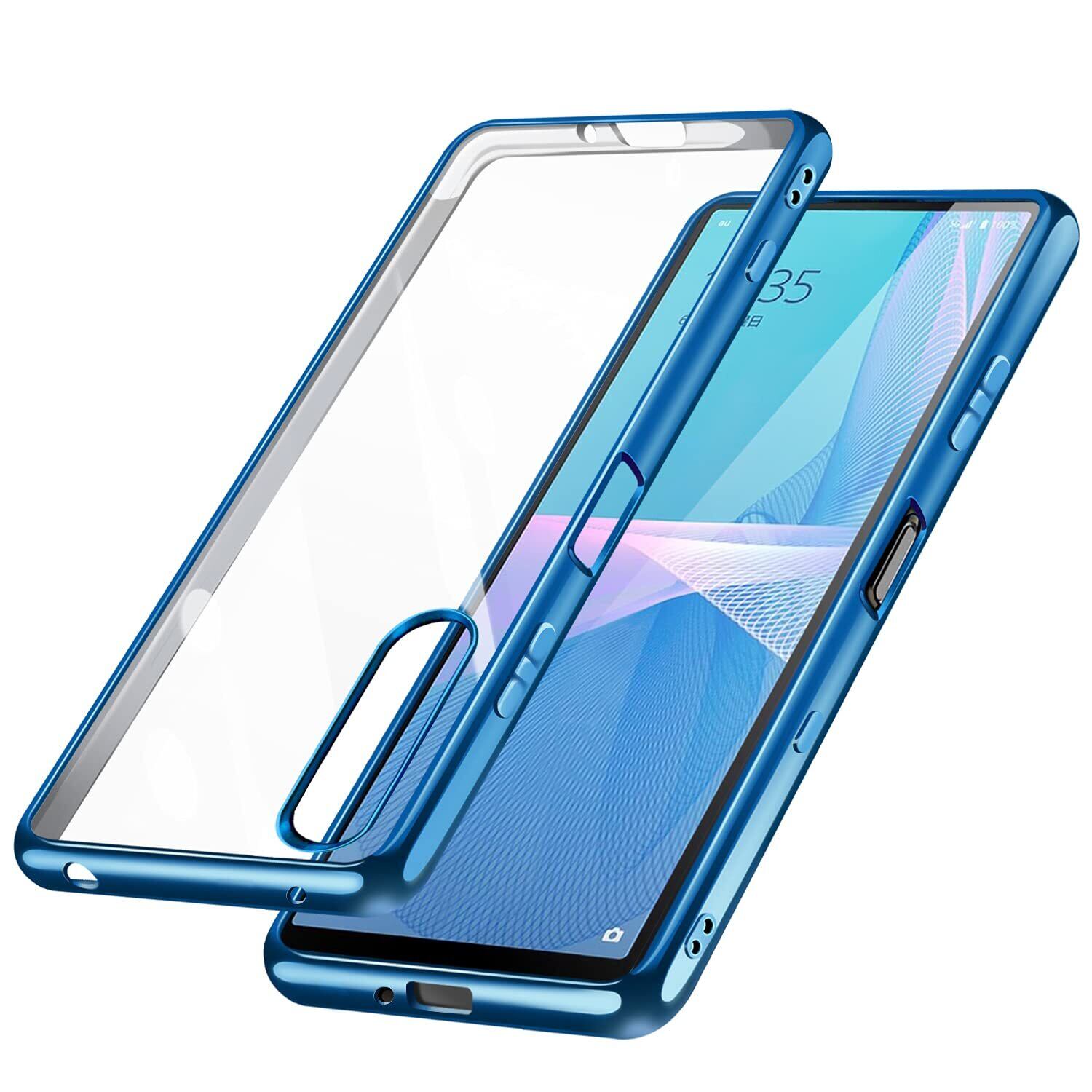 Xperia 10 III/Xperia 10 III Lite ケース クリア SO-52B スマホケース SOG04 / XQ-BT44 ソフト tpu 薄型 透明 背面クリア 青縁 メッキ加工 エスクペリア10III ストラップホール付き 超軽量 耐衝撃 カバー ブルー